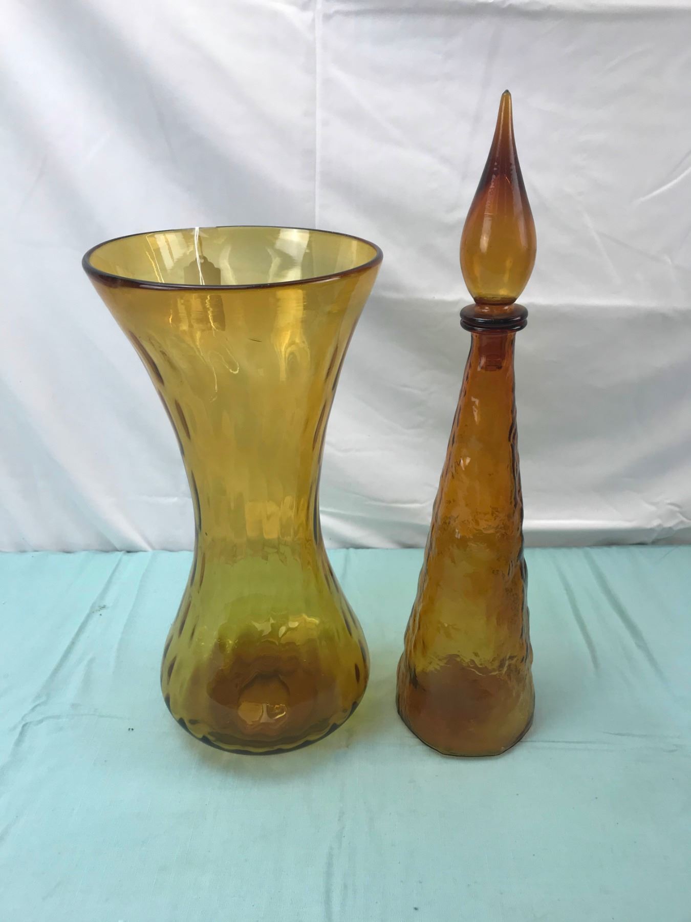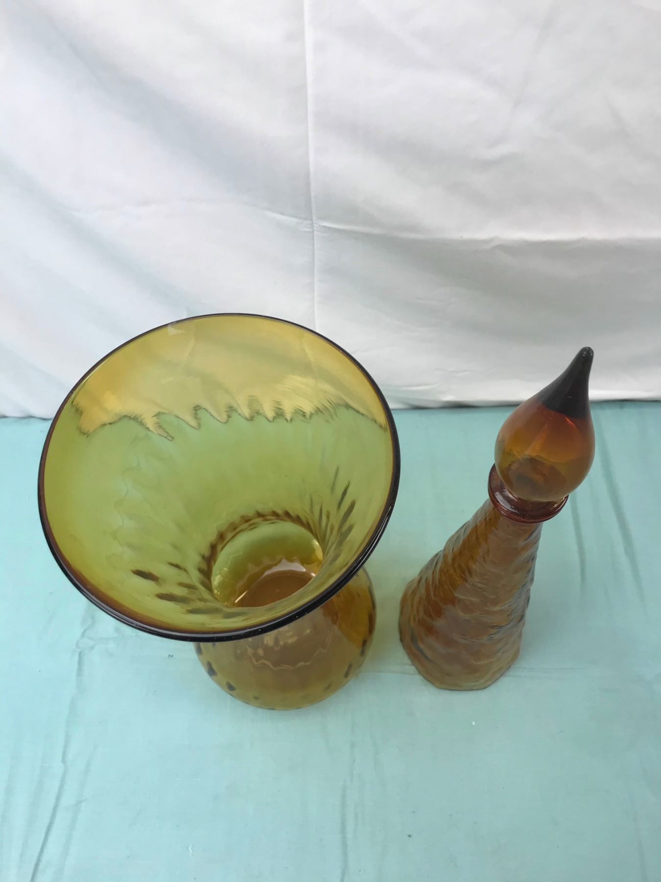 Glass vase 15" tall - Orange glass decanter 18.5" tall