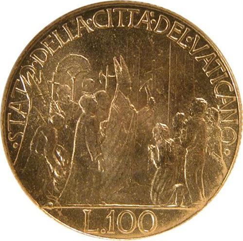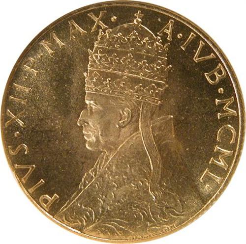 Vatican 1950 Pope Pius XII 100 Lire NGC MS-67. This is a superbly lustrous and virtually flawless piece