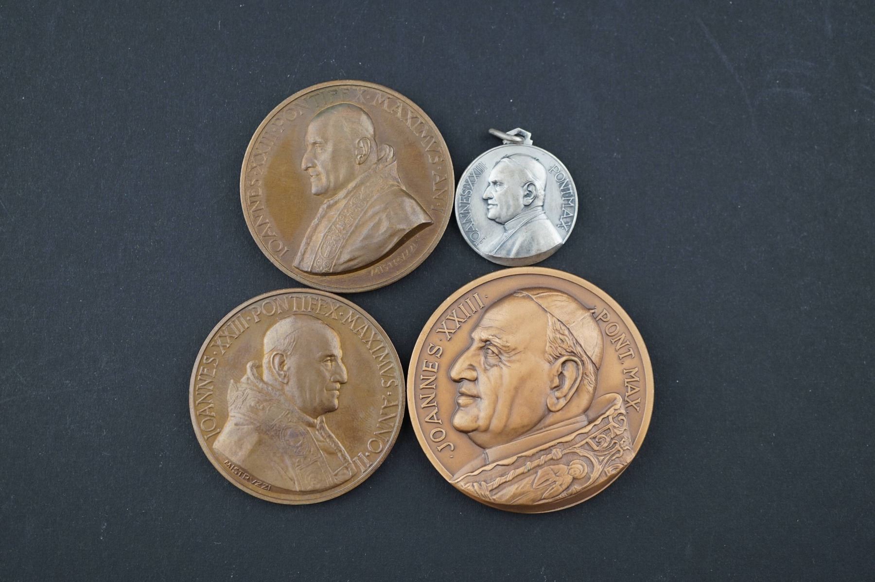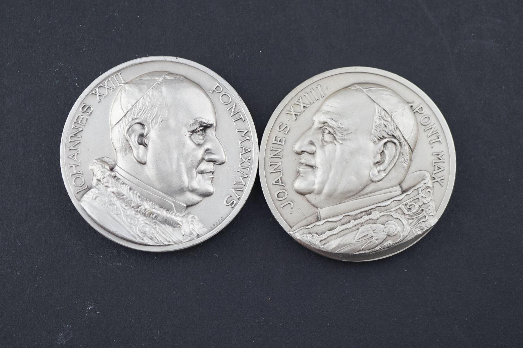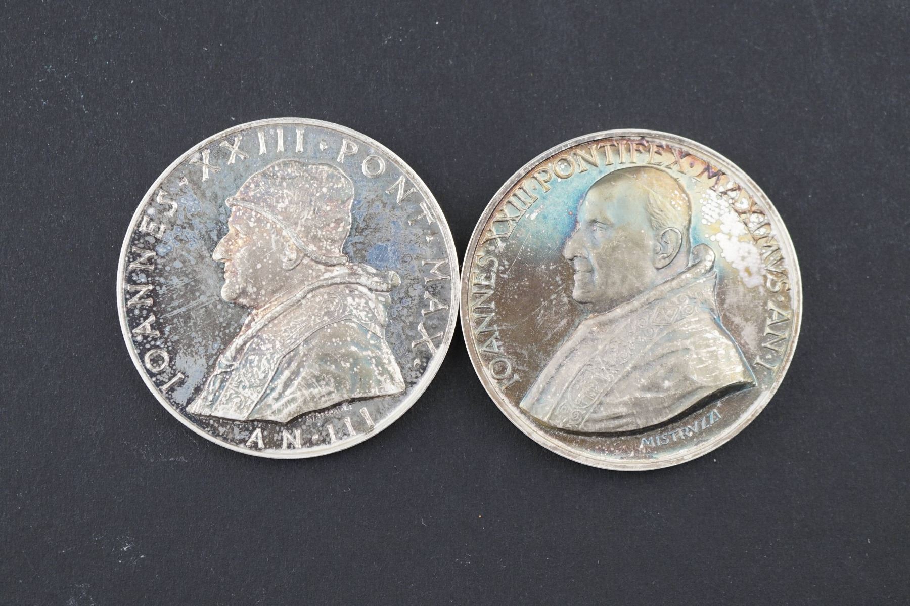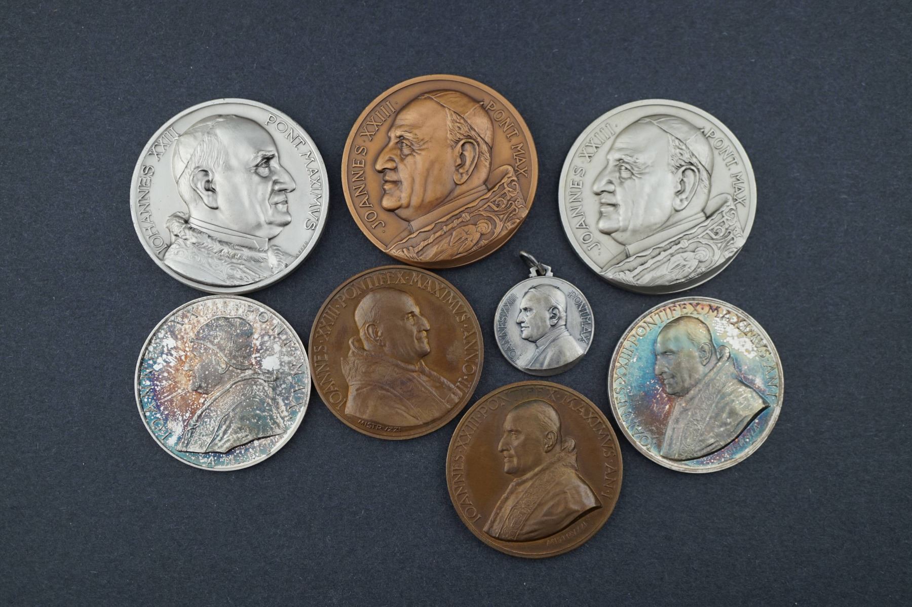 8 Pcs. John XXIII Annuals and Commemoratives. 3 Bronzes FDC AE-44 to AE-50 & 5 silvered bronze FDC AE-25 to AE-50. 2 sets of duplicates, should be viewed