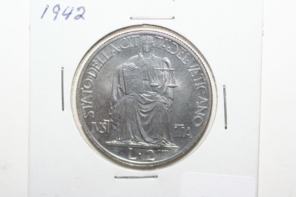 This lot is a 1942 vatican city 2 lire coin