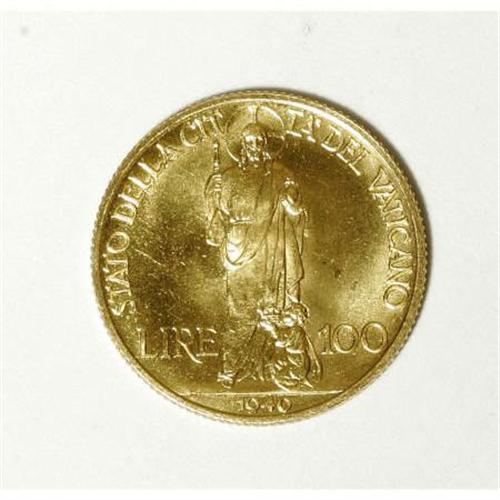 <B>Pius XII gold 100 Lire 1940,</B></I> KM-30.1, Choice Uncirculated.<BR><BR><b>Shipping:</b> Coins & Currency (<a target="_blank" href="http://www.heritageauctions.com/common/shipping.php">view shipping information</a>)
