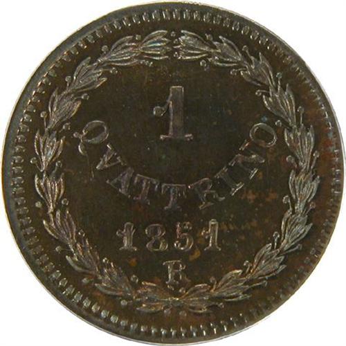 Quattrino 1851R PCGS MS-64 Red and Brown. A fully struck piece with glossy surfaces