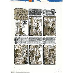 Vaughn Bode - Original Art for Bode's Cartoon Concert (1975). A unique piece from a truly enigmatic creator. Although Bode died tragically, a self-styled "cartoon guru," he left behind a body of work that is still read and enjoyed today for its cutting, off-center humor and its cartoony and comfortable style. The page offered here is from Bode's Cartoon Concert, a unique mix of comic and performance art in which Bode would project the panels on a screen while reading the dialogue and bringing the characters to life for his audience. Produced shortly before his death, this piece truly showcases a creative genius at the height of his considerable powers. Measuring approximately 12" x 16.5", with an image area of approximately 12.5" x 9.5", the art is in excellent condition, and has been signed by Bode in the last panel. Important notice: We expect to be auctioning lots at the rate of 200-250 per hour. Sometimes eBay Premier live bid software cannot keep up with that pace, so we strongly recommend that you place a realistic proxy bid now as insurance to avoid disappointment. Also please note that all Heritage/CAA lots purchased through eBay Premier carry a 20% Buyer's Premium. Please make sure you read the Terms and Conditions.