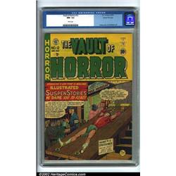 Vault of Horror #12 Gaines File pedigree 1/1 (EC, 1950). This comic book is truly one of the highlights of the sale; we believe it to be the single most desirable horror comic. Vault #12 is regarded as the first stand-alone EC horror comic, and while EC did not invent the horror genre, they made it popular and created a brand. They had national chains of distribution and a strong subscription base that other, much smaller publishers lacked. EC also had the best artists, writers and editors. To make up for their handicaps, these other, smaller publishers produced crudely-drawn comics that relied on shock value and pushing the limits of good taste. The end results were Congressional hearings, best-selling condemnations by psychologists, censorship and ultimately, the demise of the horror comic book genre and EC as a comic book publisher. The Vault of Horror runs continuously through the entire golden era of EC; offered here is the first issue of this seminal title. Overstreet designates this issue as scarce; it seldom turns up in collections, and almost never in this condition. It is uncirculated and, most likely, unread. Two small stress lines at the spine and minor wear at the top left corner are the only readily apparent defects. This is a very fresh copy with white pages. EC publisher William Gaines typically filed away twelve copies of every comic book he produced during this era; these books have come to be known as the Gaines File copies, and are highly sought after by collectors, in no small part because they often represent the best-known copies of each individual issue. But Vault of Horror #12 is legendary among Gaines File collectors, as only one single copy -- the one offered here -- was filed away for posterity. Not only is this a beautiful copy of an important book, it is unique. In order to ever acquire a complete set of Gaines File copies, this book is a must. It is the lynchpin in completing one of the most daunting -- but rewarding -- series in comic book collecting. CGC NM- 9.2 White pages. Overstreet 2001 NM 9.4 value = $4,600. Important notice: We expect to be auctioning lots at the rate of 200-250 per hour. Sometimes eBay Premier live bid software cannot keep up with that pace, so we strongly recommend that you place a realistic proxy bid now as insurance to avoid disappointment. Also please note that all Heritage/CAA lots purchased through eBay Premier carry a 20% Buyer's Premium.