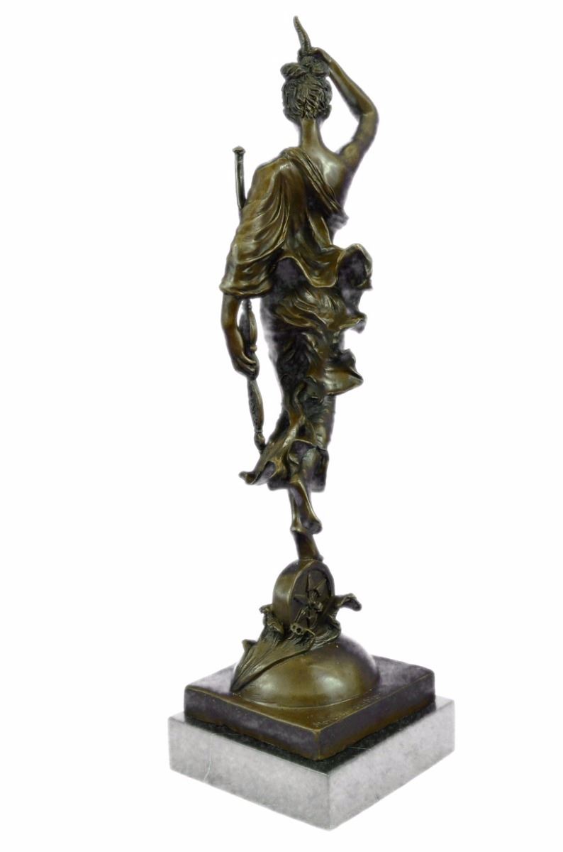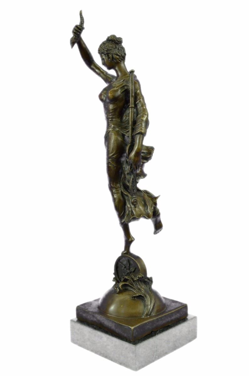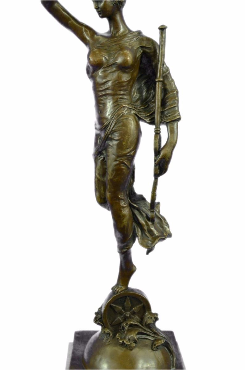 A Rare 19Th Century Reproduction French Bronze Sculpture By Augustin Jean Moreau Vauthier Titled "Fortuna" Signed Moreau Vauthier, The Sculpture Comes With A Rich Brown Patina, Featuring Fortuna With Cornucopia In One Hand And Lyre In The Other, Standing On The World Flanked .This Work Is 100% Real Bronze Century And Represents The Height Of The Quality Bronze Making That This Era And Is Know For By Renowned European Foundry In The Heart Of Spain. Bronze Dimensions With Marble Base: Height 21 X Width 6 inches. Weight: 17 Lbs. This Is Not An Original Of His Work But A Recent Reproduction.