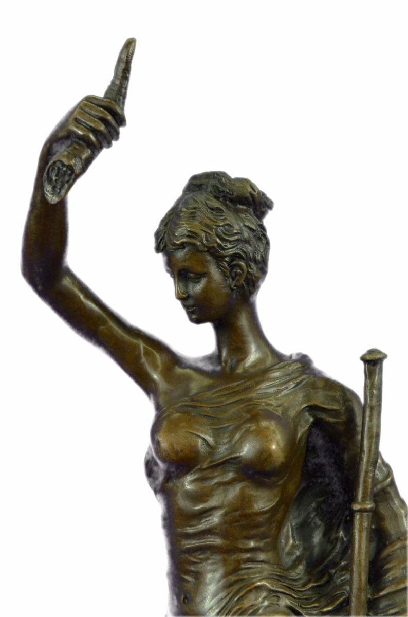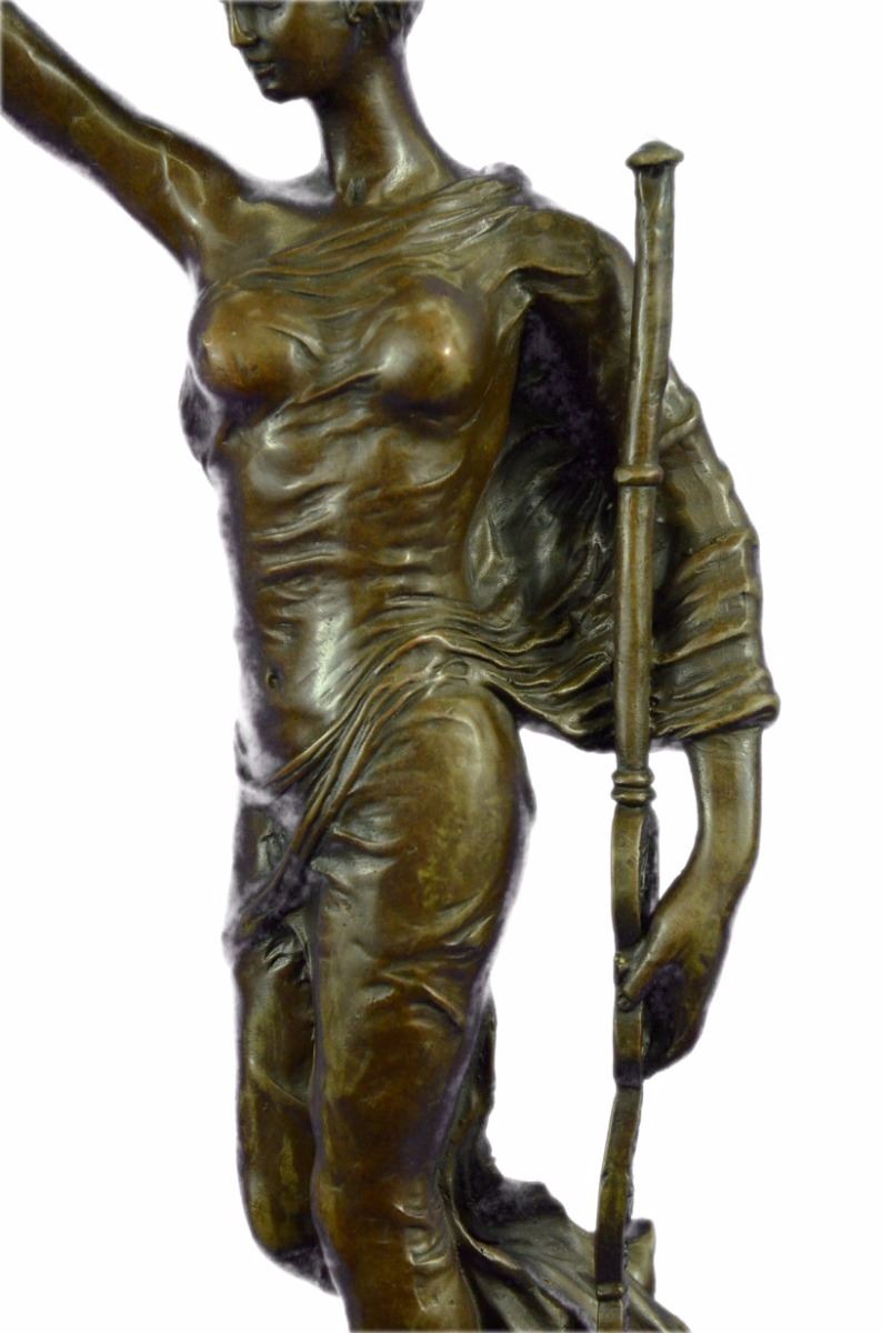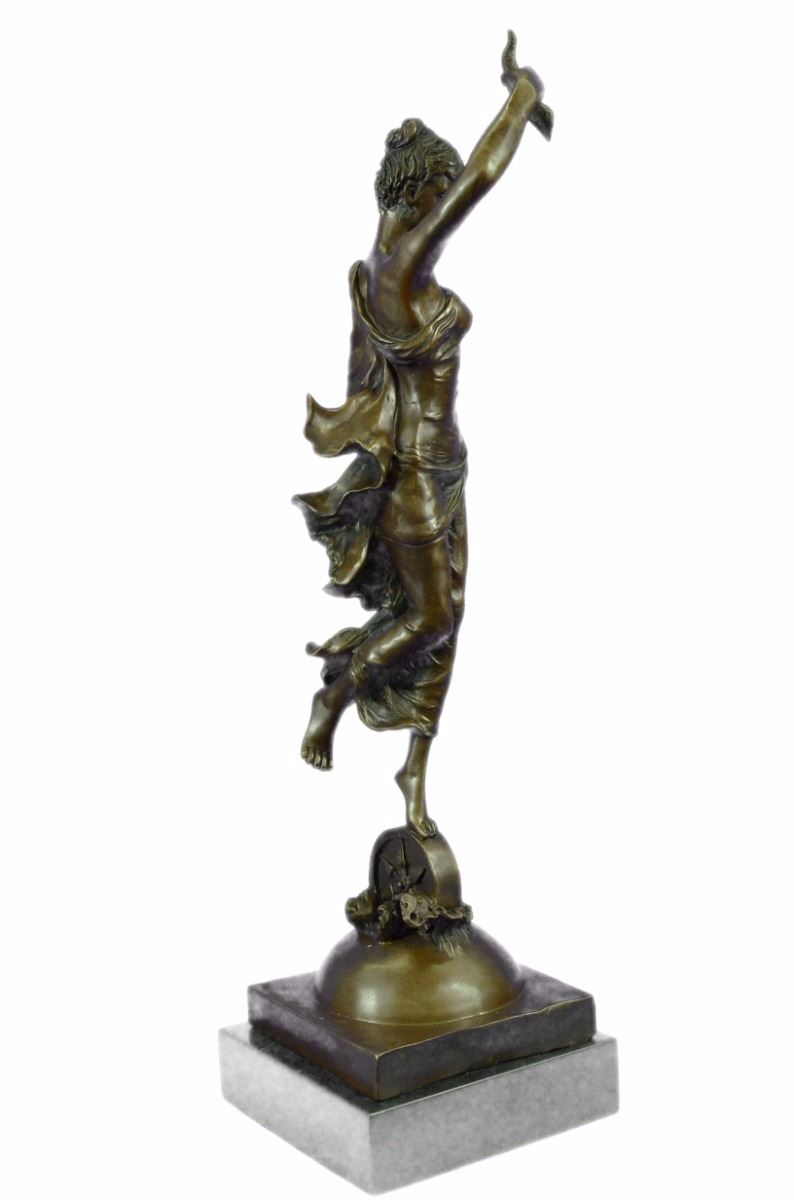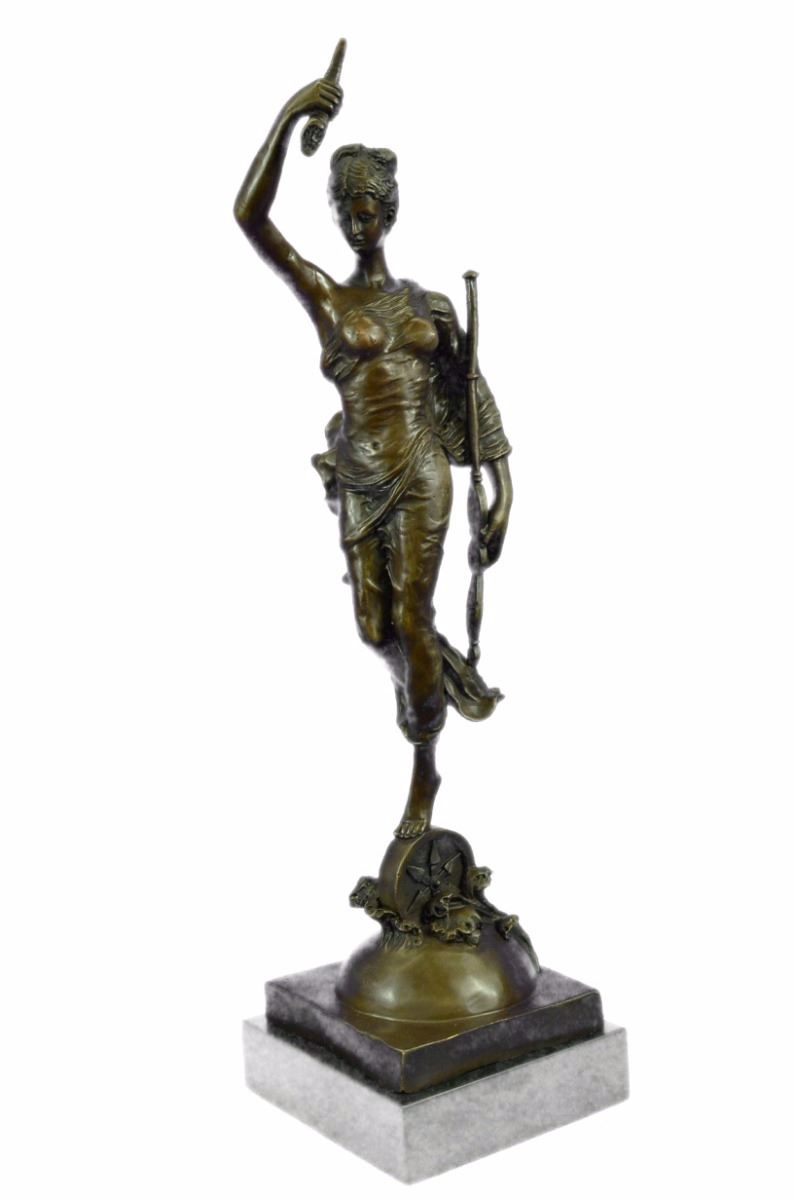 A Rare 19Th Century Reproduction French Bronze Sculpture By Augustin Jean Moreau Vauthier Titled "Fortuna" Signed Moreau Vauthier, The Sculpture Comes With A Rich Brown Patina, Featuring Fortuna With Cornucopia In One Hand And Lyre In The Other, Standing On The World Flanked .This Work Is 100% Real Bronze Century And Represents The Height Of The Quality Bronze Making That This Era And Is Know For By Renowned European Foundry In The Heart Of Spain. Bronze Dimensions With Marble Base: Height 21 X Width 6 inches. Weight: 17 Lbs. This Is Not An Original Of His Work But A Recent Reproduction.