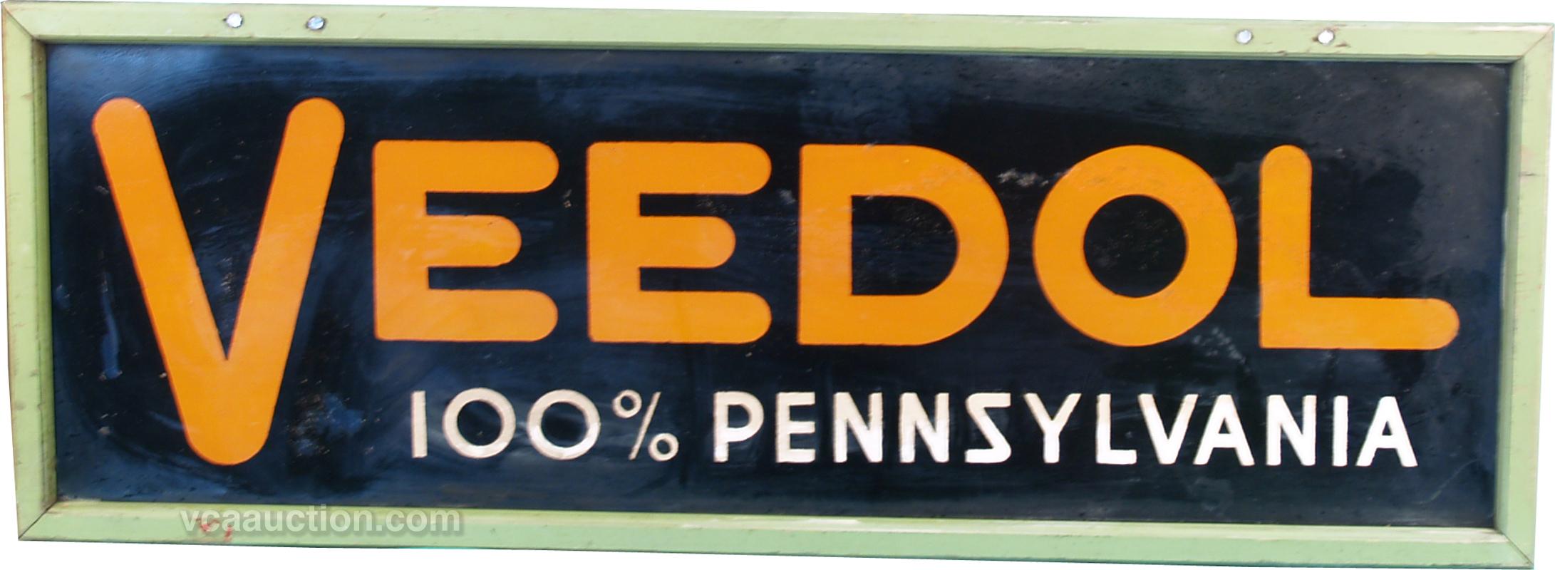 Veedol 100% Pennsylvania Tin Sign In Green Wood Frame - 43" x 16"