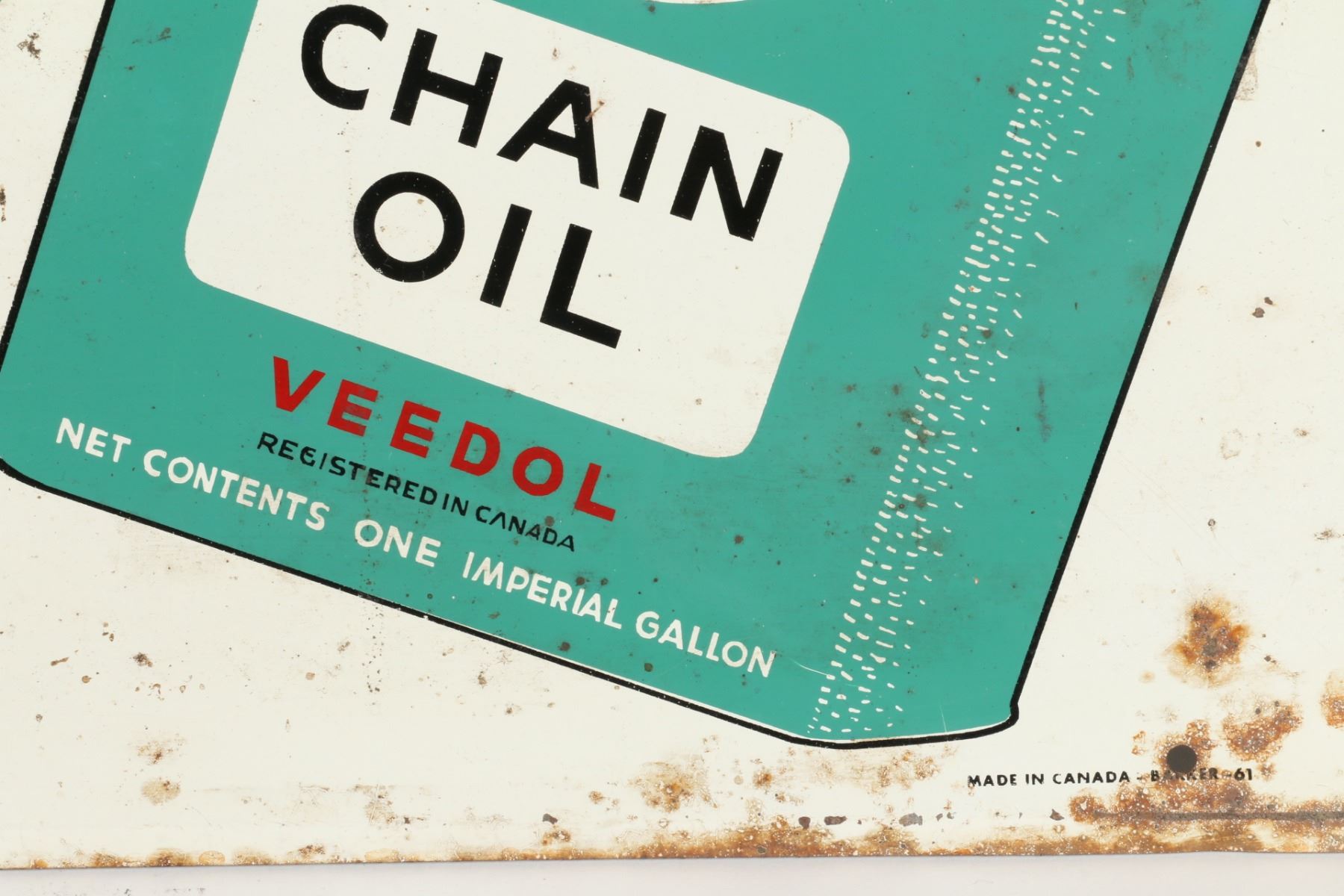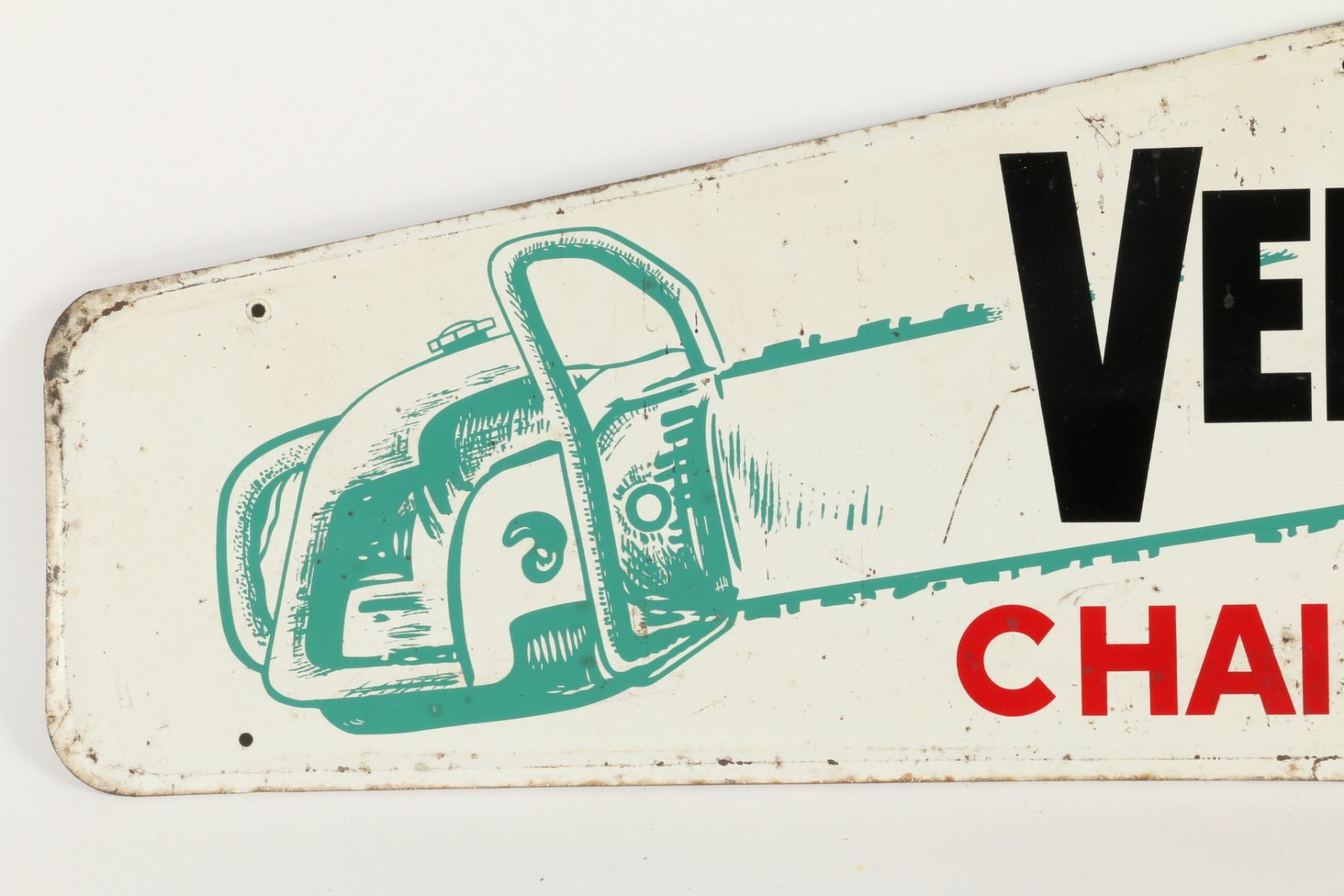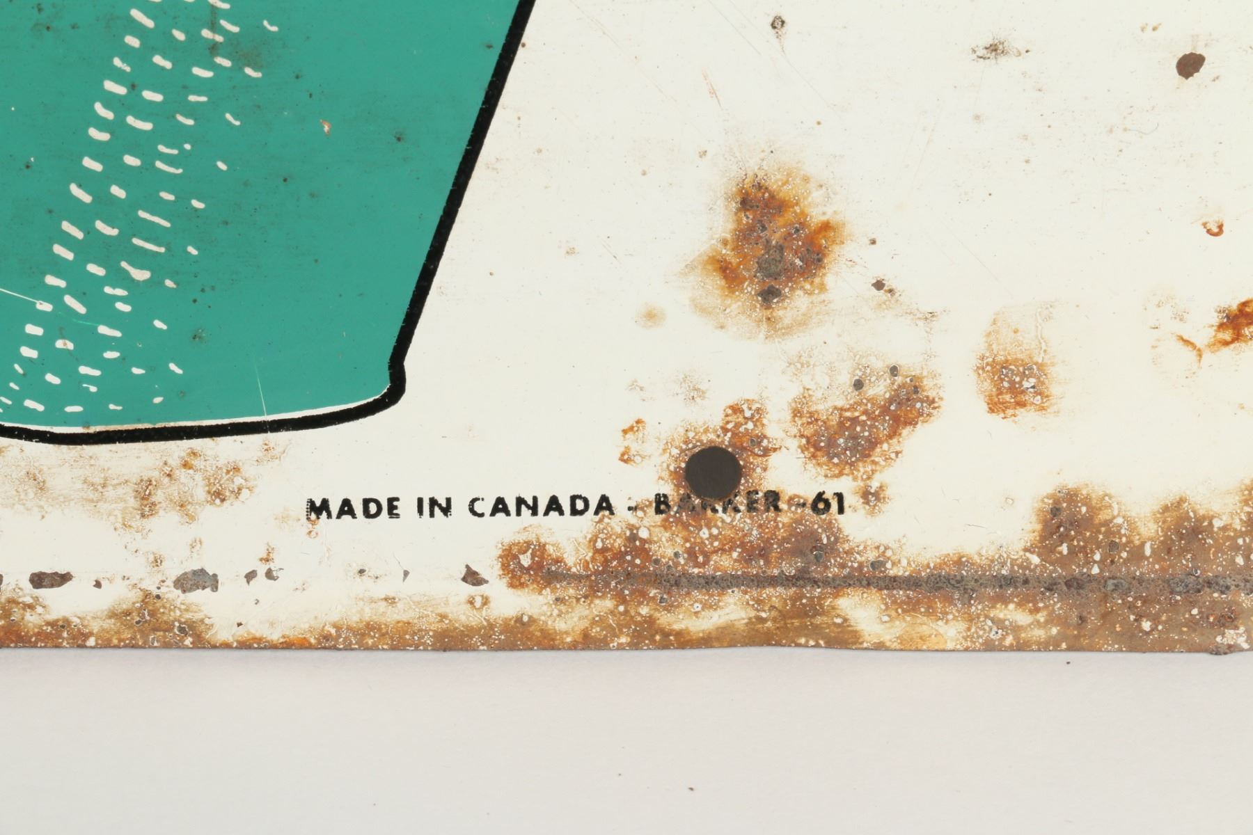 Circa 1960s. Lithographed tin.Trapezoid. Marked, "Made in Canada - Barker '61", lower right edge. 31.5" x 12". Oxidation and corrosion, mostly right edges. $200-300.