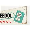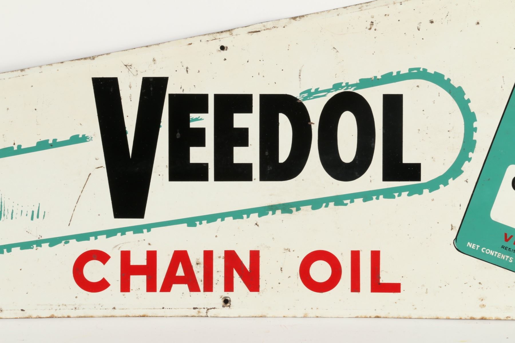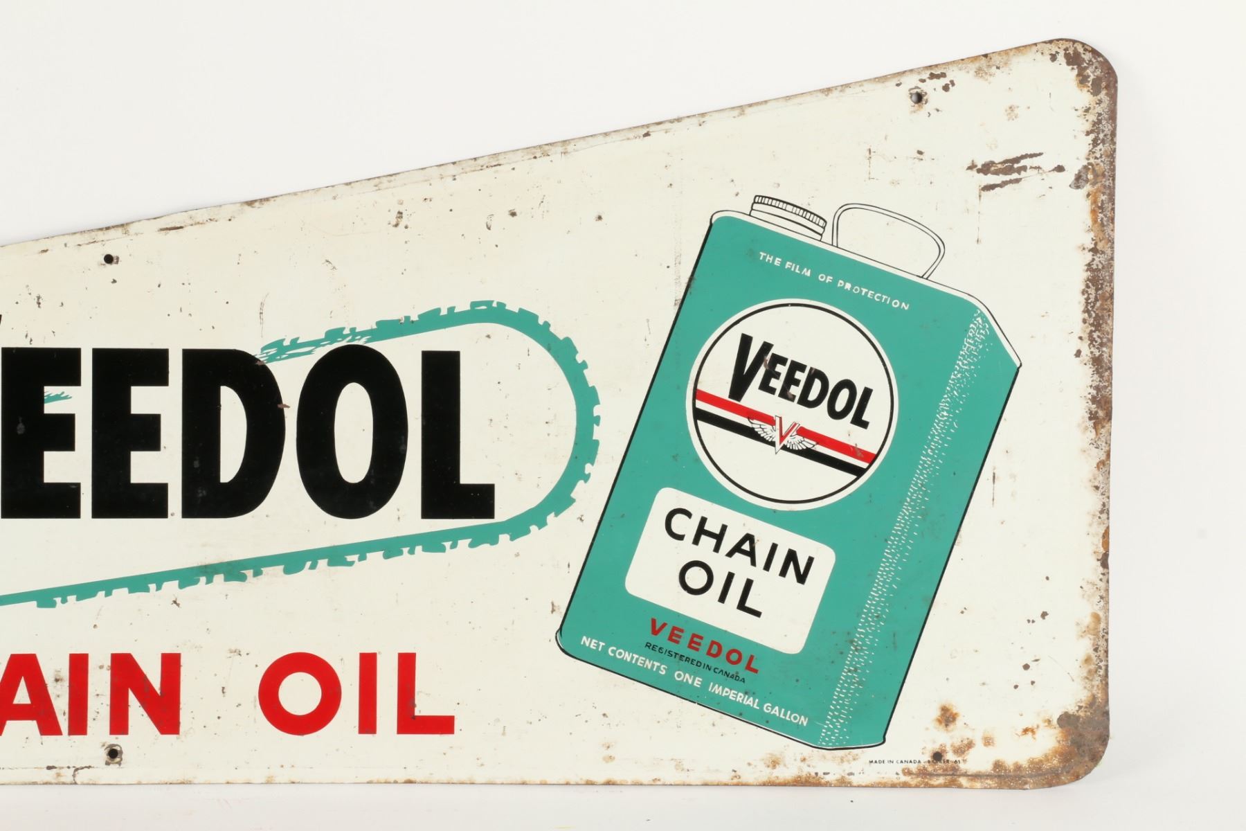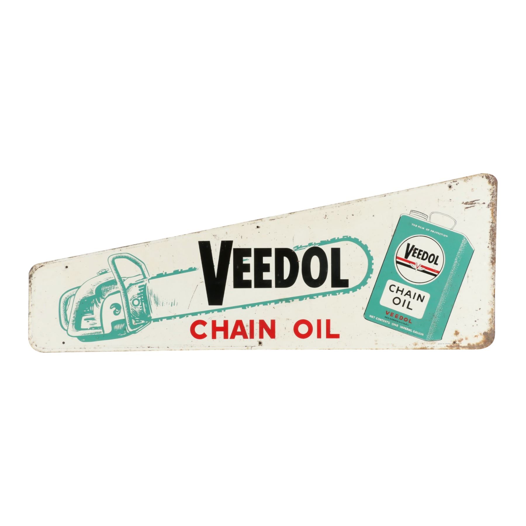 Circa 1960s. Lithographed tin.Trapezoid. Marked, "Made in Canada - Barker '61", lower right edge. 31.5" x 12". Oxidation and corrosion, mostly right edges. $200-300.