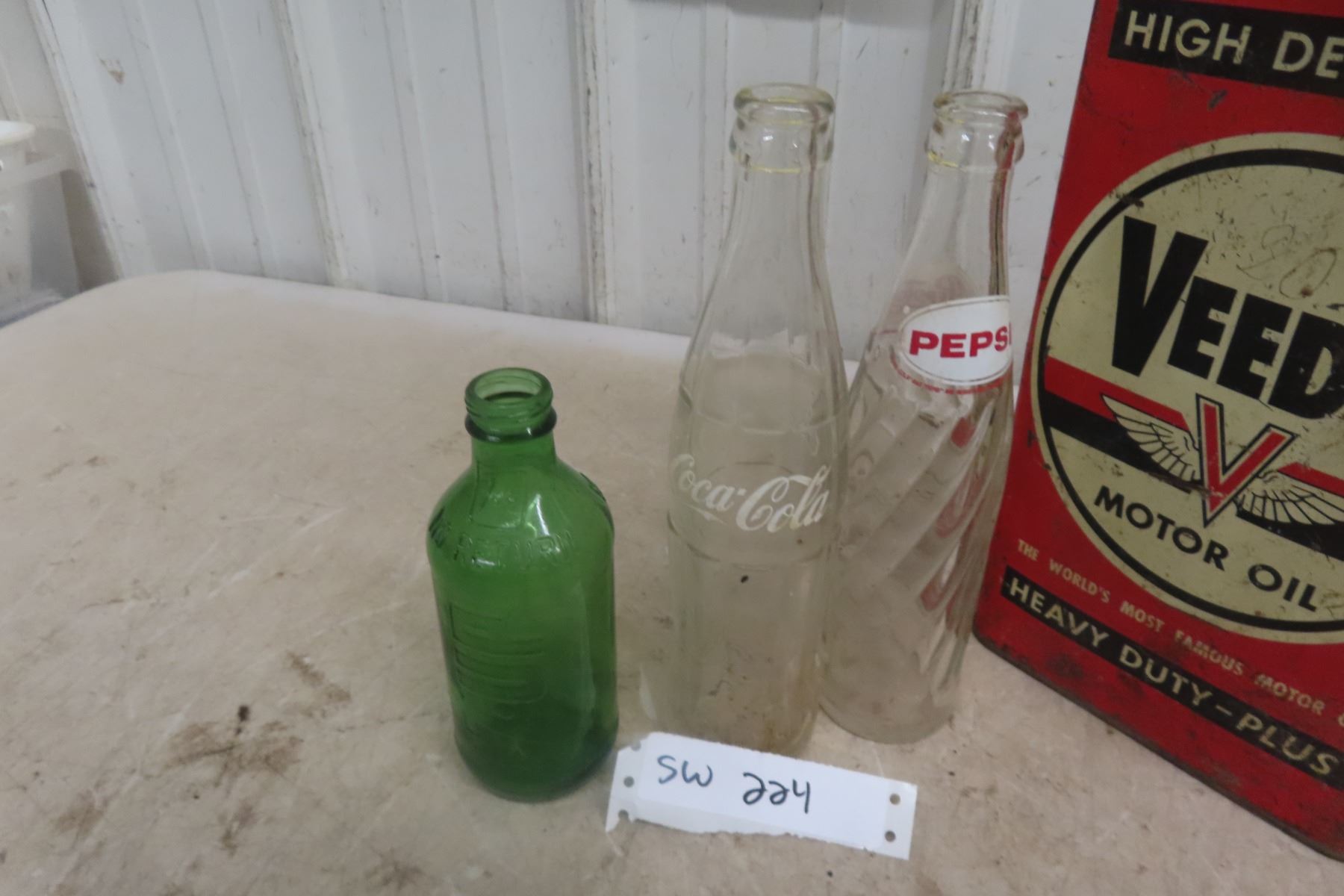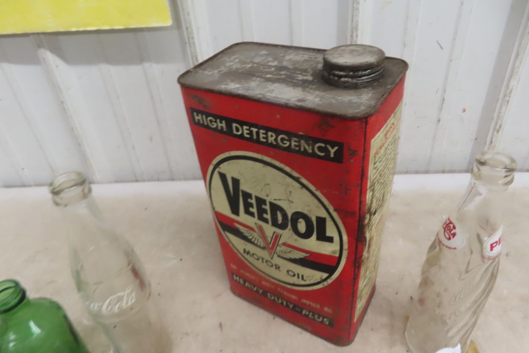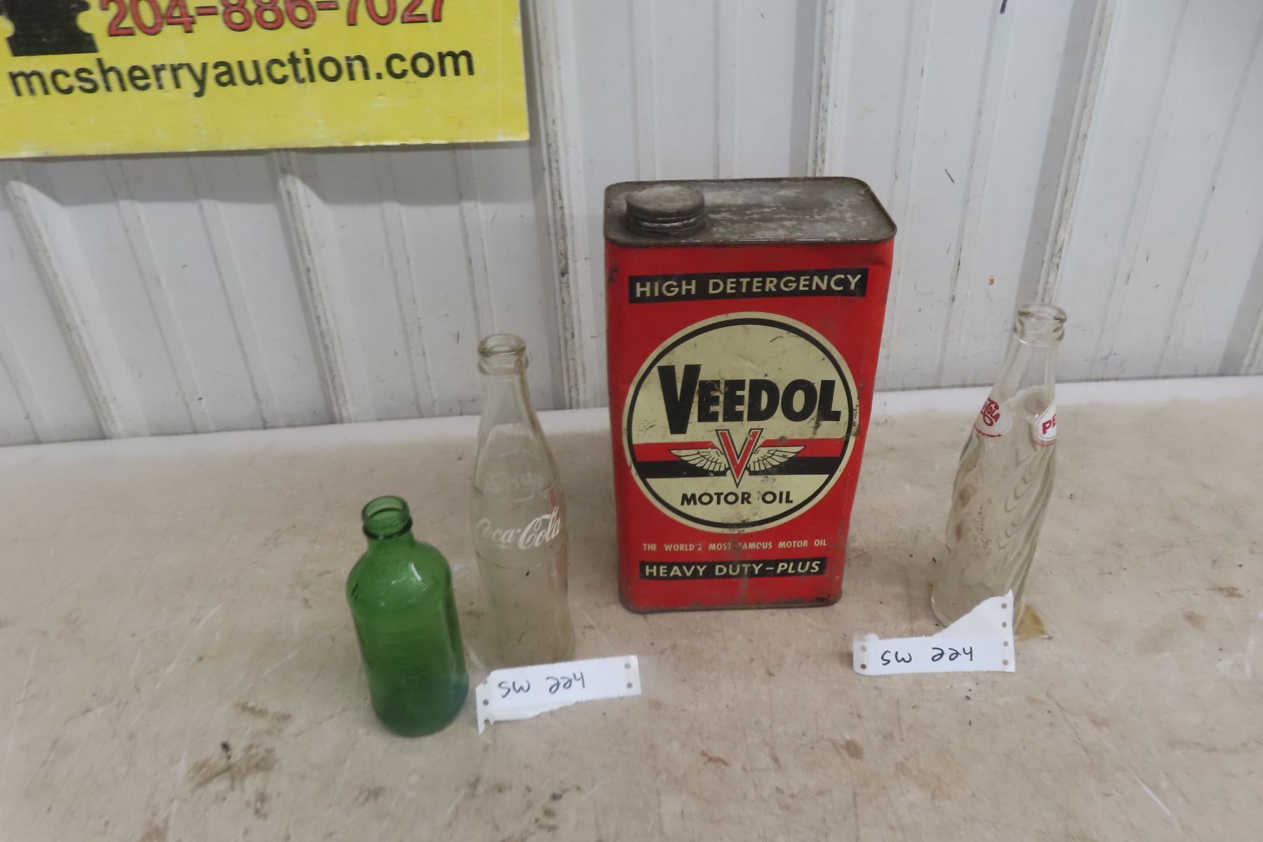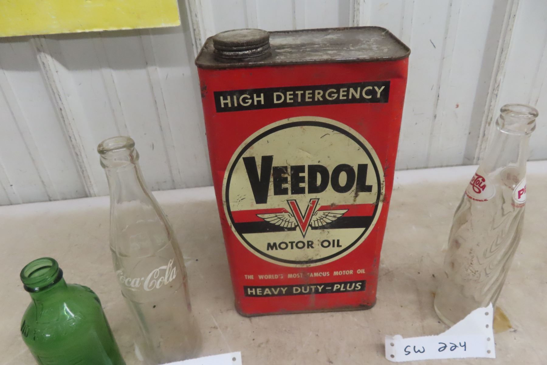 Veedol One Gallon Oil Can And 3 Glass Pop Bottles