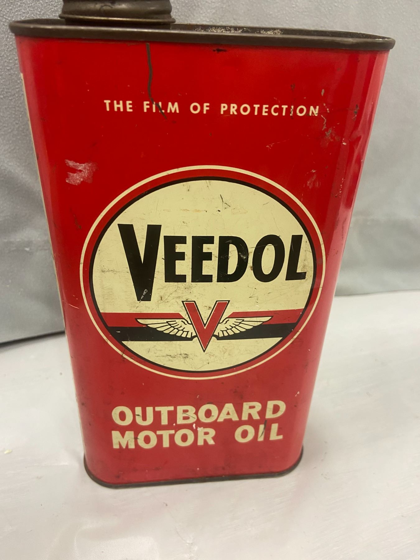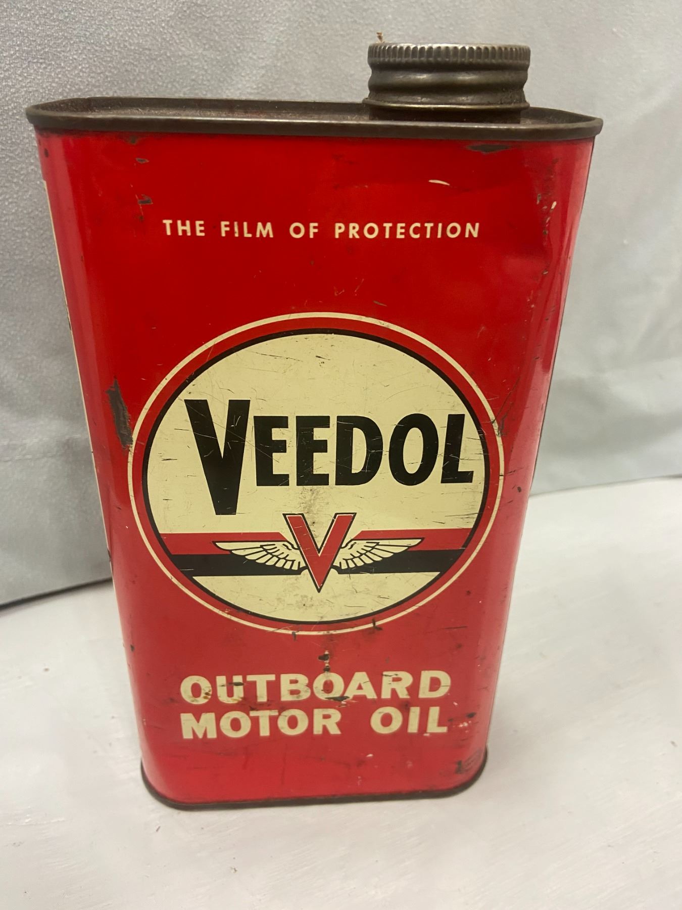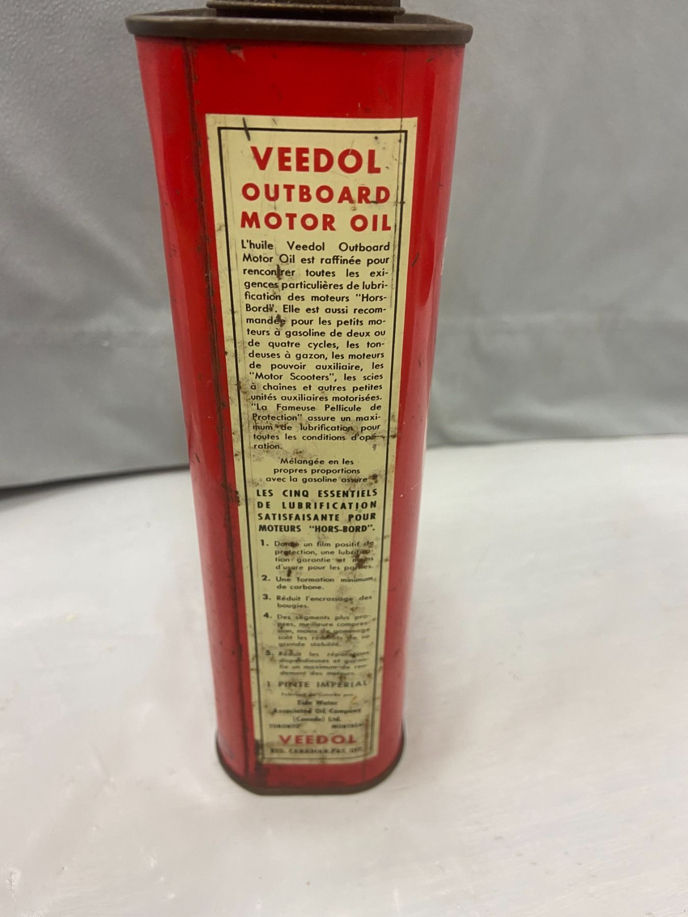 Veedol Outboard Motor Oil Tin Flying V Logo - 1 Qt - RARE TIN