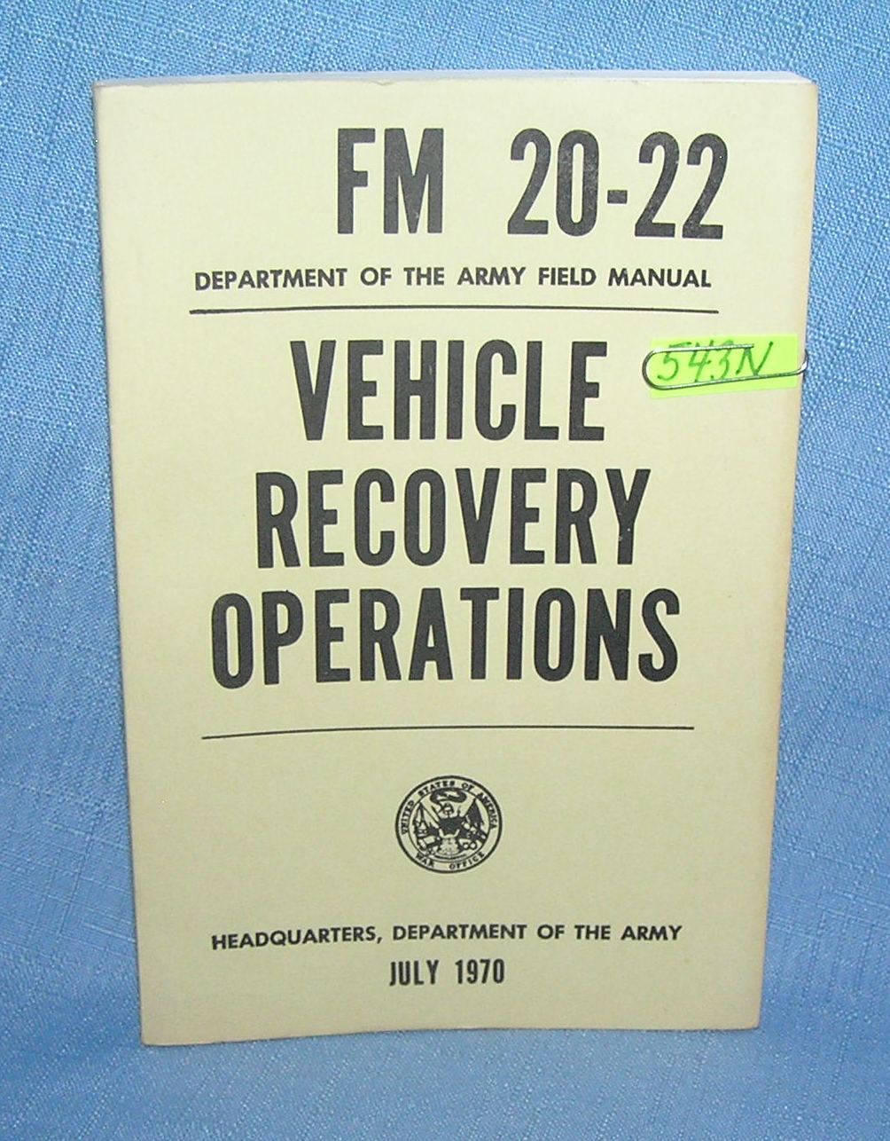 Vehicle recovery operations Dept. of the Army field manuel 1970 est. value $35.00-$40.00