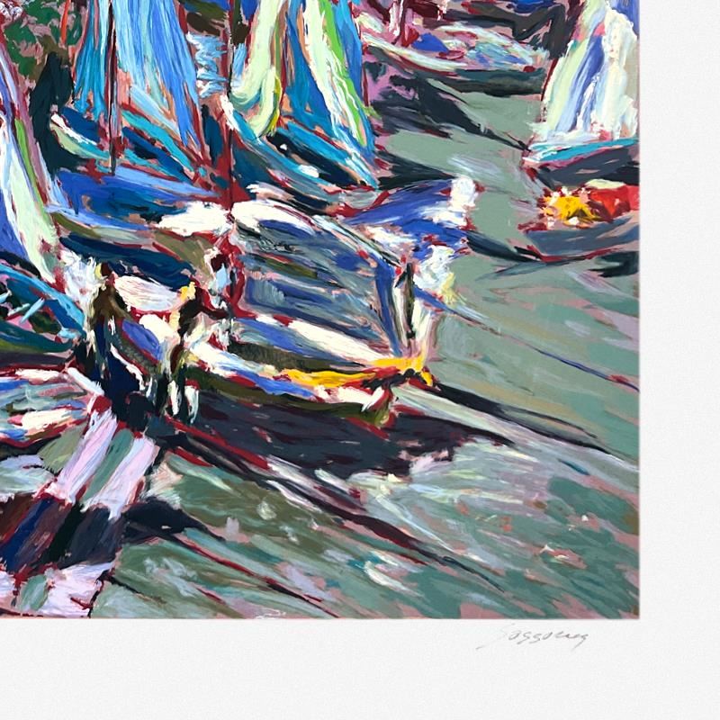 "Vele a Portofino" is a limited edition printers proof on paper by Marco Sassone, numbered 3/5 and hand signed by the artist. Includes Letter of Authenticity. Measures approx. 37.5" x 35" (border), 32" x 30" (image). There are minor imperfections in the white border area.