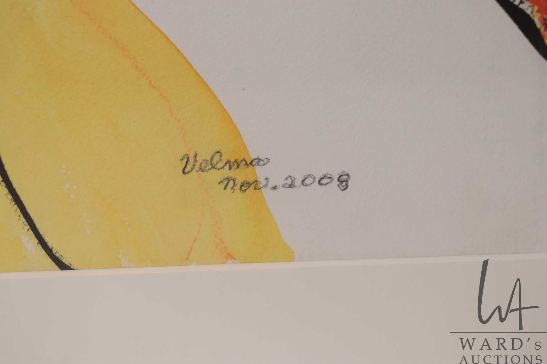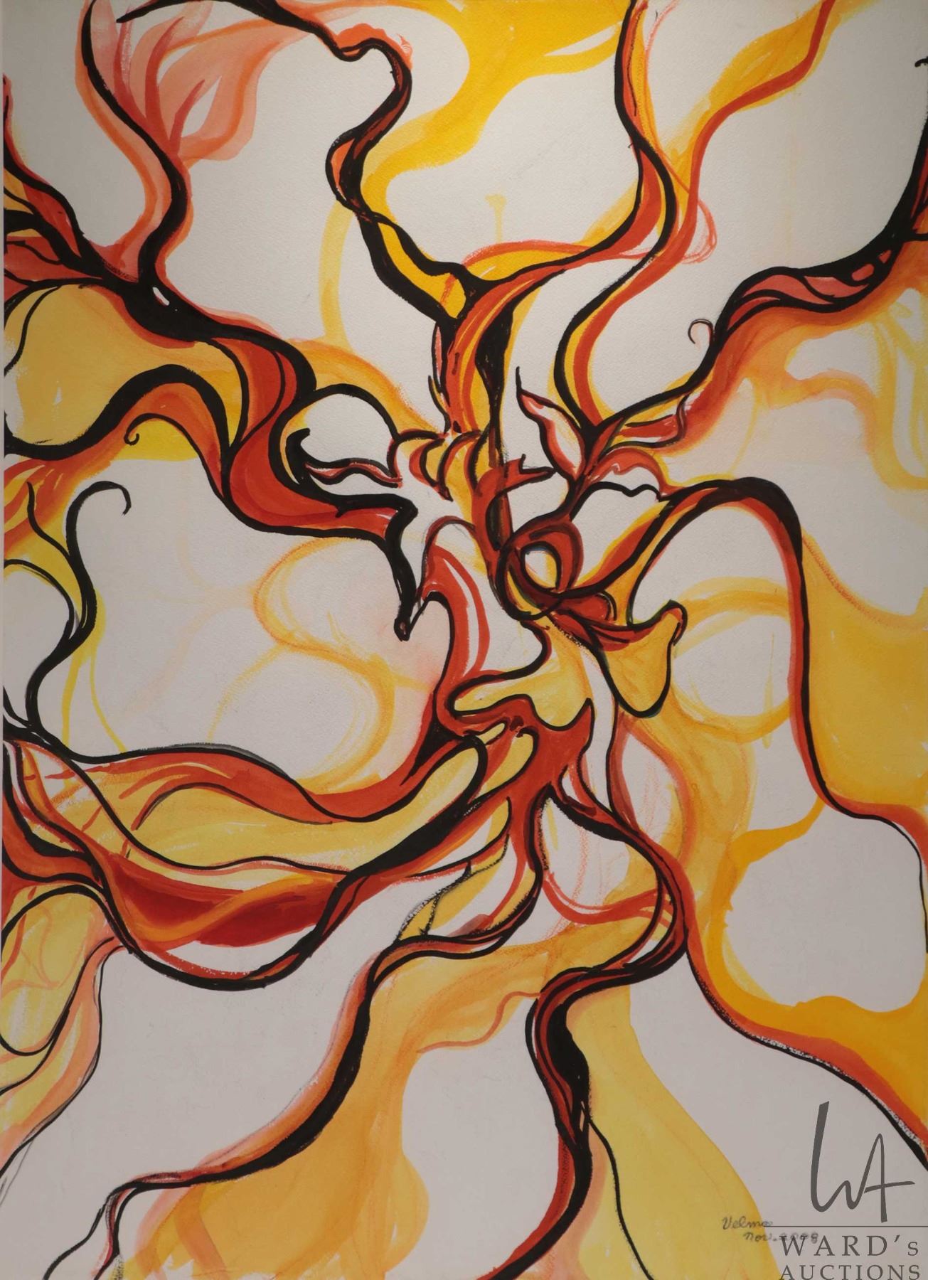 Velma Heath, artist signed watercolour painting, titled on verso "Fire" and dated Nov. 2008, 29" X 20 1/2". Note: Not available for shipping. Local pickup only