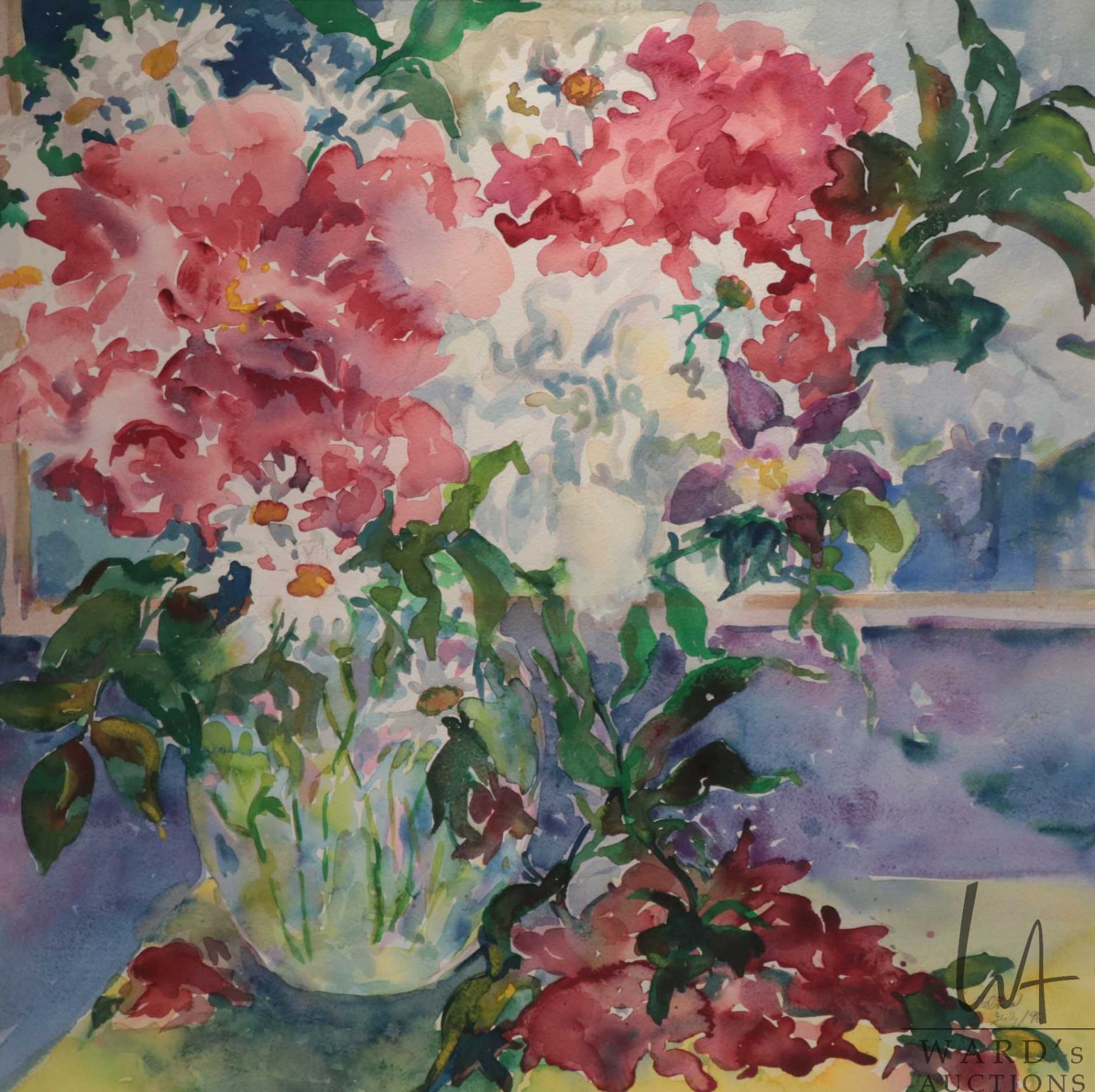 Velma Heath, artist signed watercolour painting, titled on verso "Still Life", dated July '96, 20" X 20". Note: Not available for shipping. Local pickup only