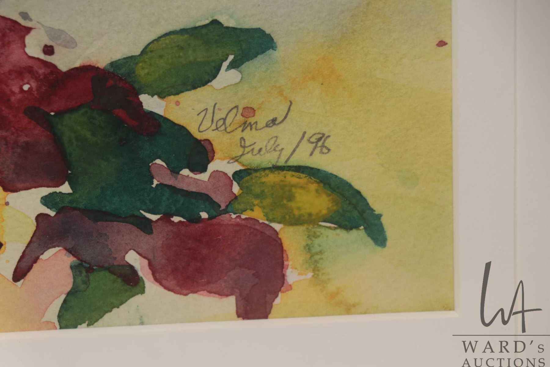 Velma Heath, artist signed watercolour painting, titled on verso "Still Life", dated July '96, 20" X