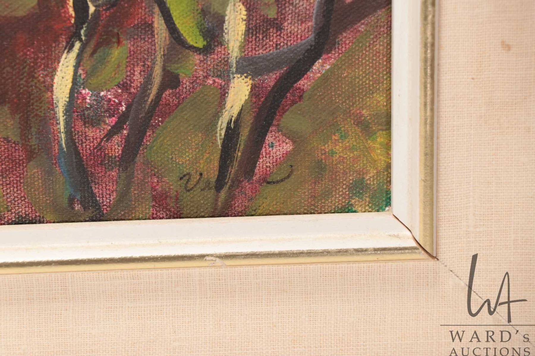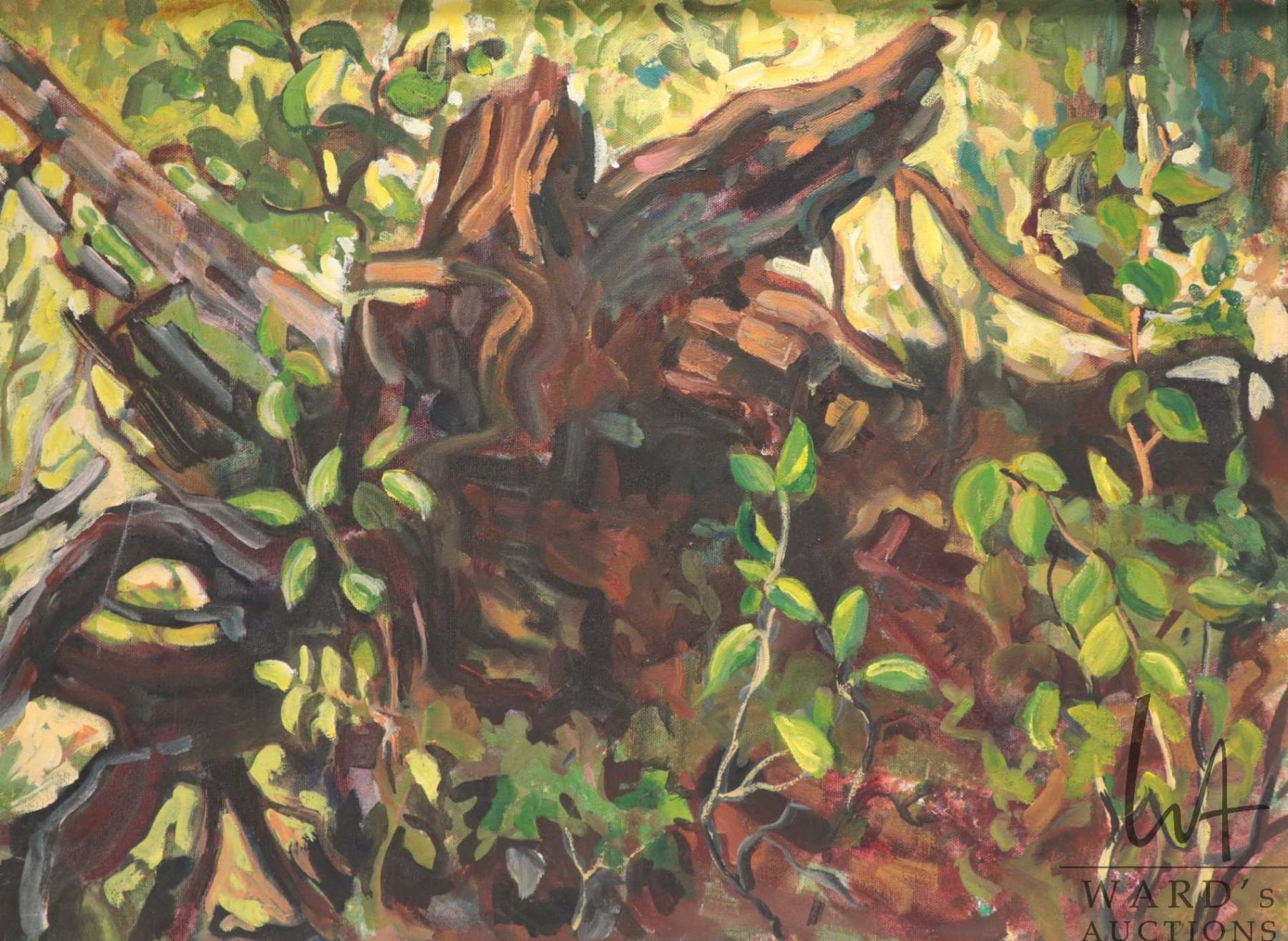 Velma Heath, framed acrylic on canvas, titled on verso " Stumps", 17" X 23". Note: Not available for