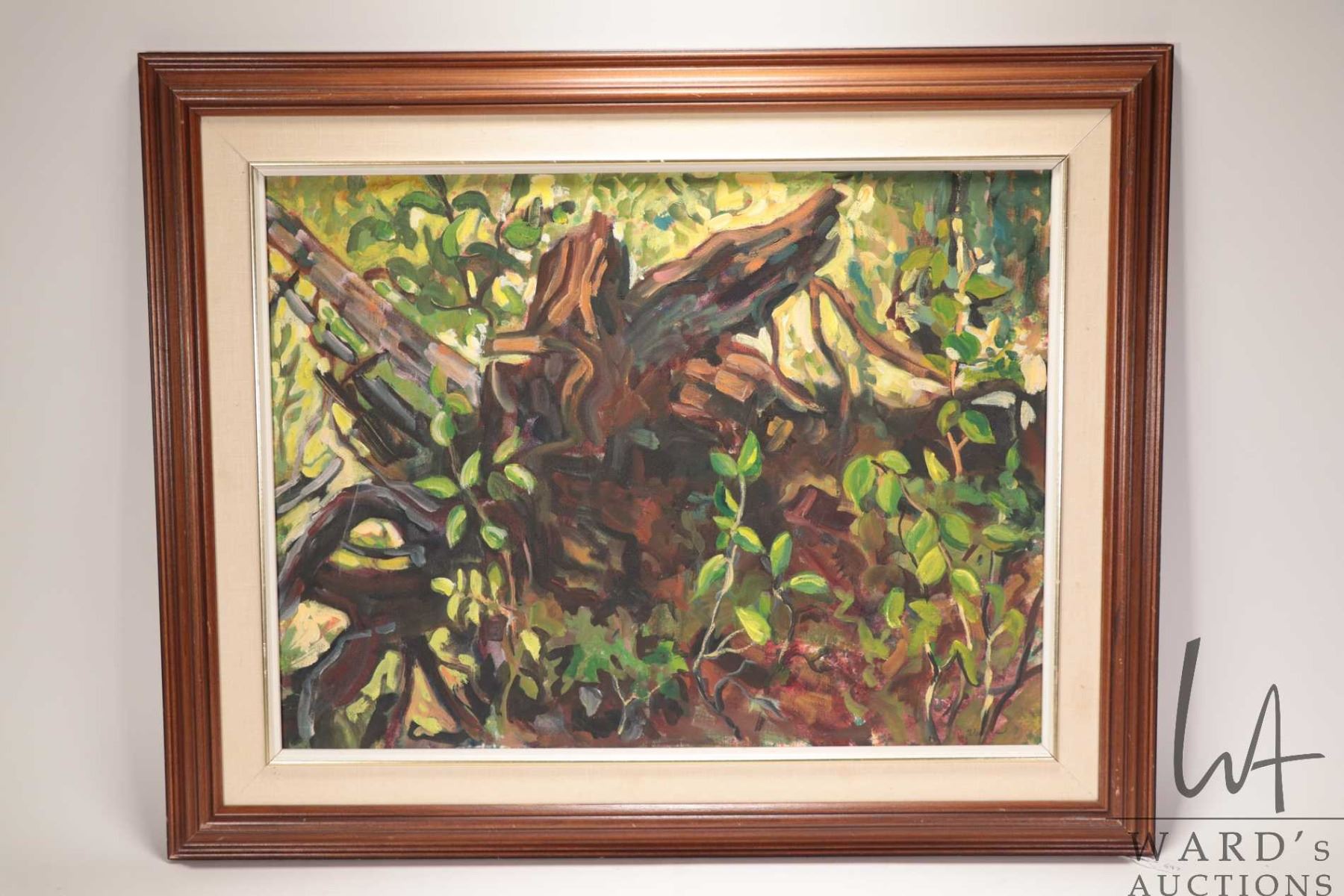 Velma Heath, framed acrylic on canvas, titled on verso " Stumps", 17" X 23". Note: Not available for shipping. Local pickup only