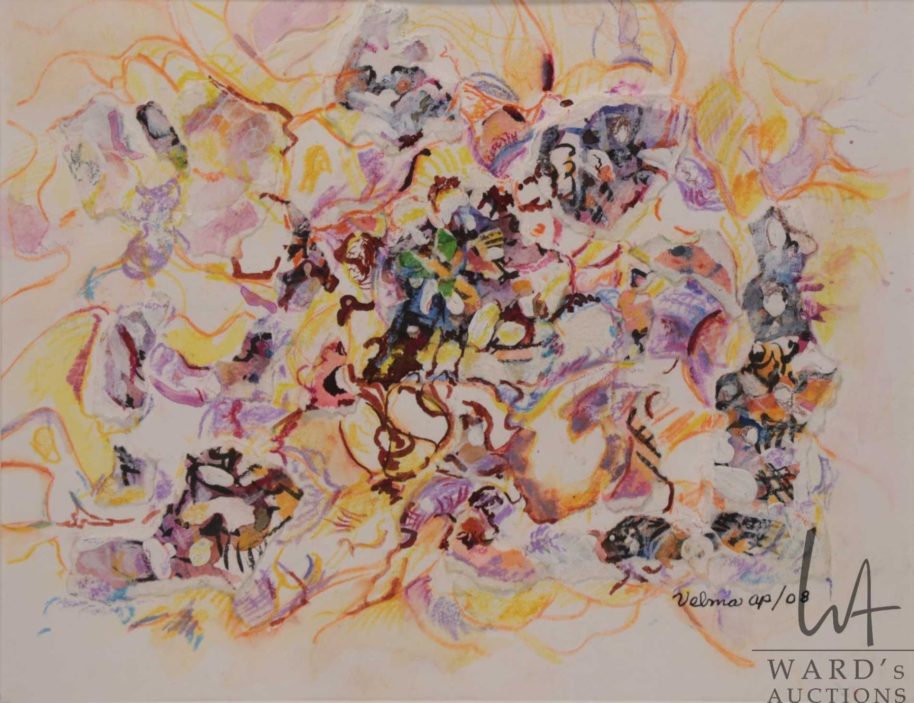 Velma Heath, untitled artist signed abstract watercolour, dated Apr. 08, 9" X 11"