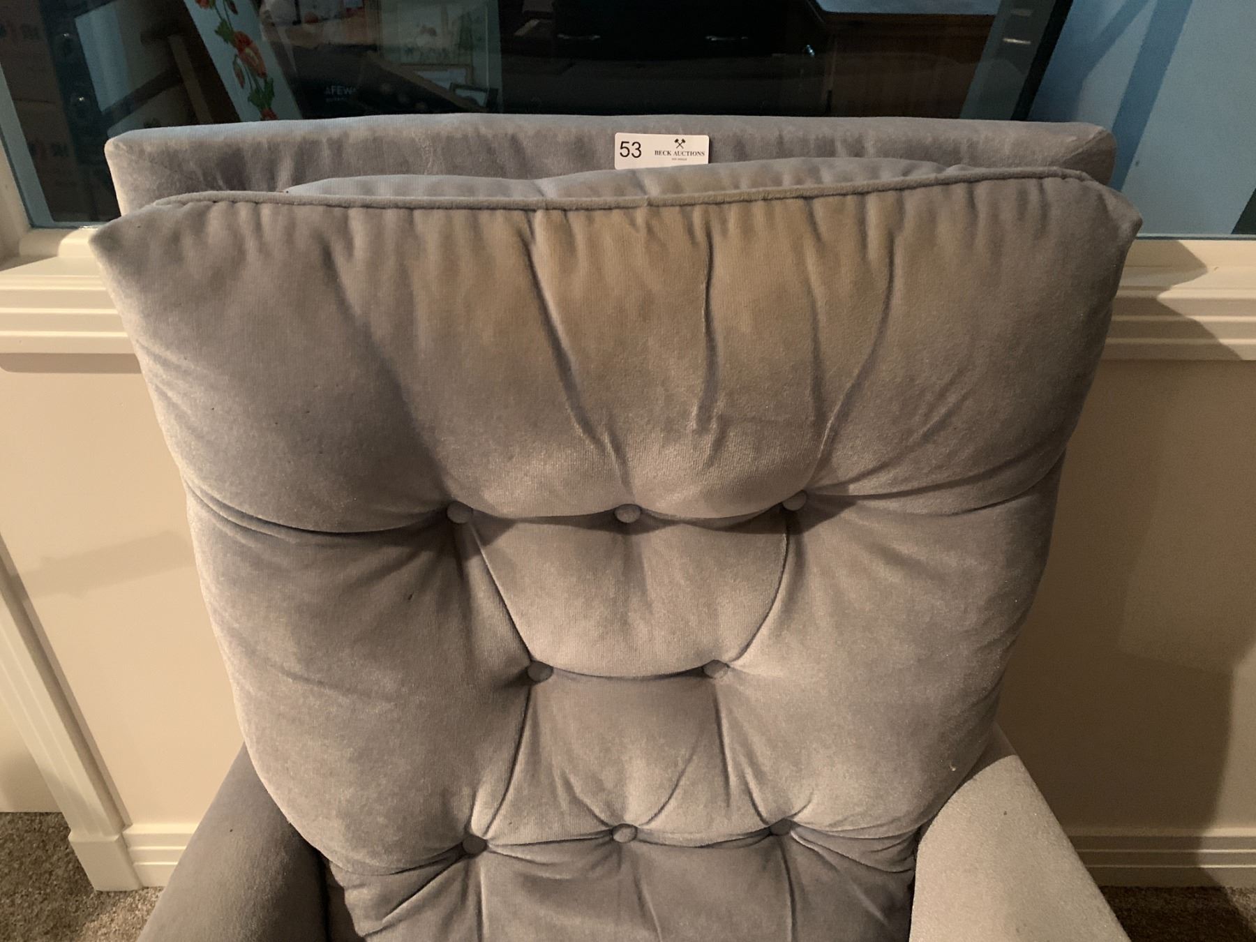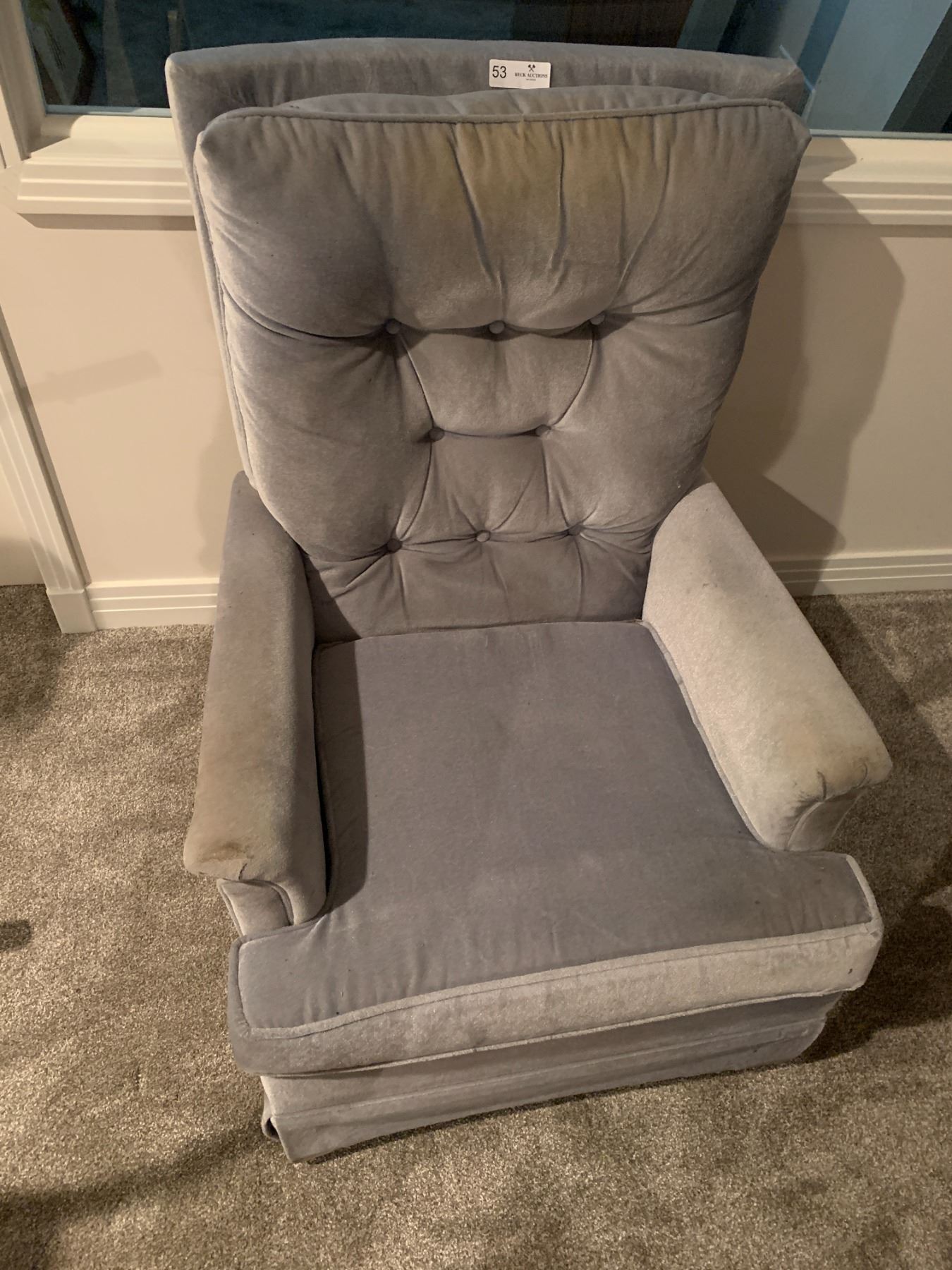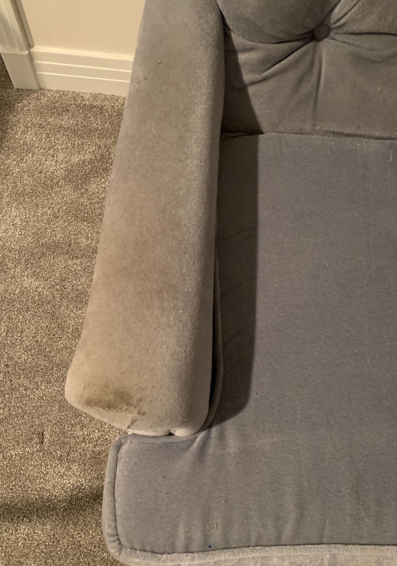 Wear/discoloration on headrest portion and arm of chair; as pictured