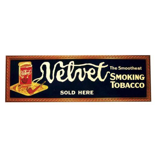 Velvet Smoking Tobacco porcelain sign. Framed to cover minor edge wear, otherwise excellent condition. 40 1/2 X 13 overall.