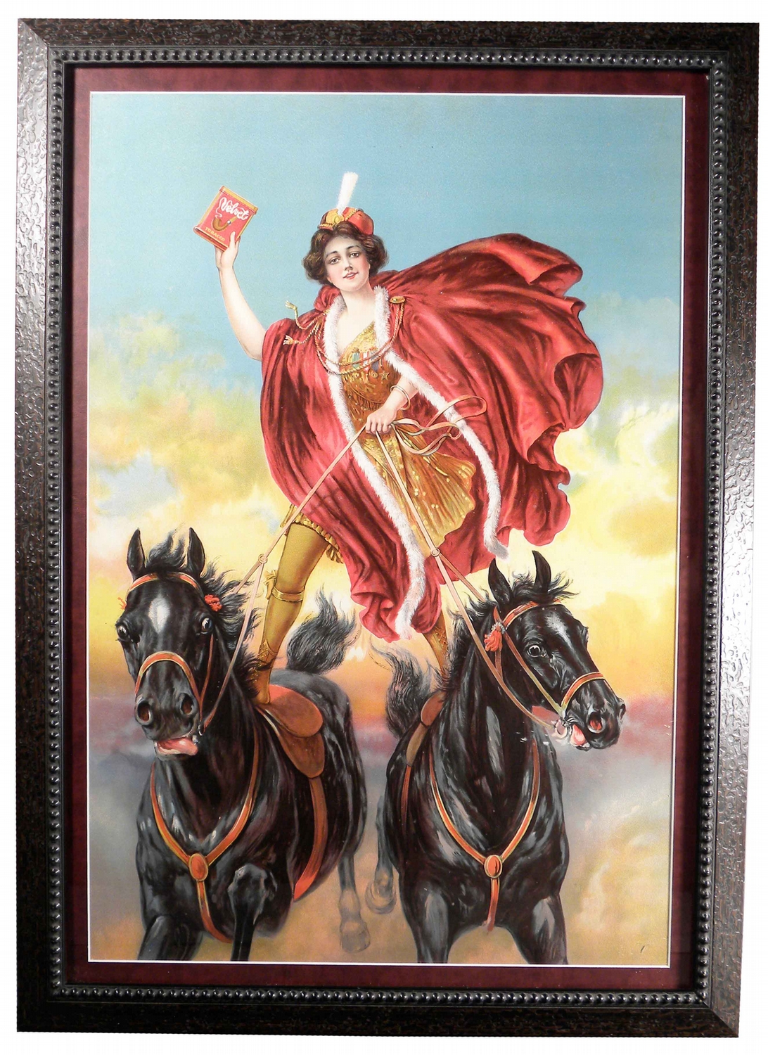 Velvet Tobacco Paper Sign. Great action graphics and bold colors. Framed under glass. Excellent condition. 21 X 31 inches image only.
