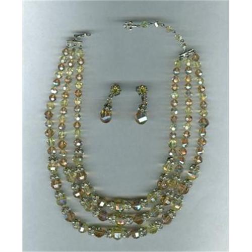 "Vendome" Necklace and Earrings (screw type) Yellow & Topaze with Crystal Rhinestones. Mint condition.
