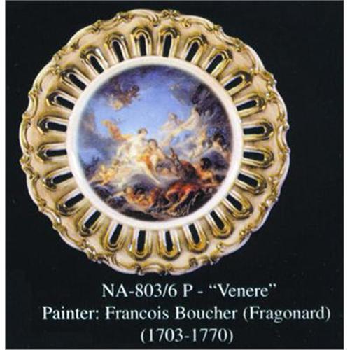 Capodimonte Porcelain "Venere" Plate. #6 out of 6 total plates. Plate reproduction by painter Francois Boucher (Fragonard) (1703 - 1770). The plate is 12" in diameter. Satisfaction Guaranteed All our capodimonte pieces are 100% authentic, made with the best craftmanship in Italy. Capodimonte is more than a century Italian style of the finest porcelain once reserved for kings and queens. The style became popular when the royal family in Italy fell in love with the beauty of Capodimonte arts. The selection you see is made by artisans, according to the same tradition dating back to the 18th Century.<BR>Free Shipping in the continental US