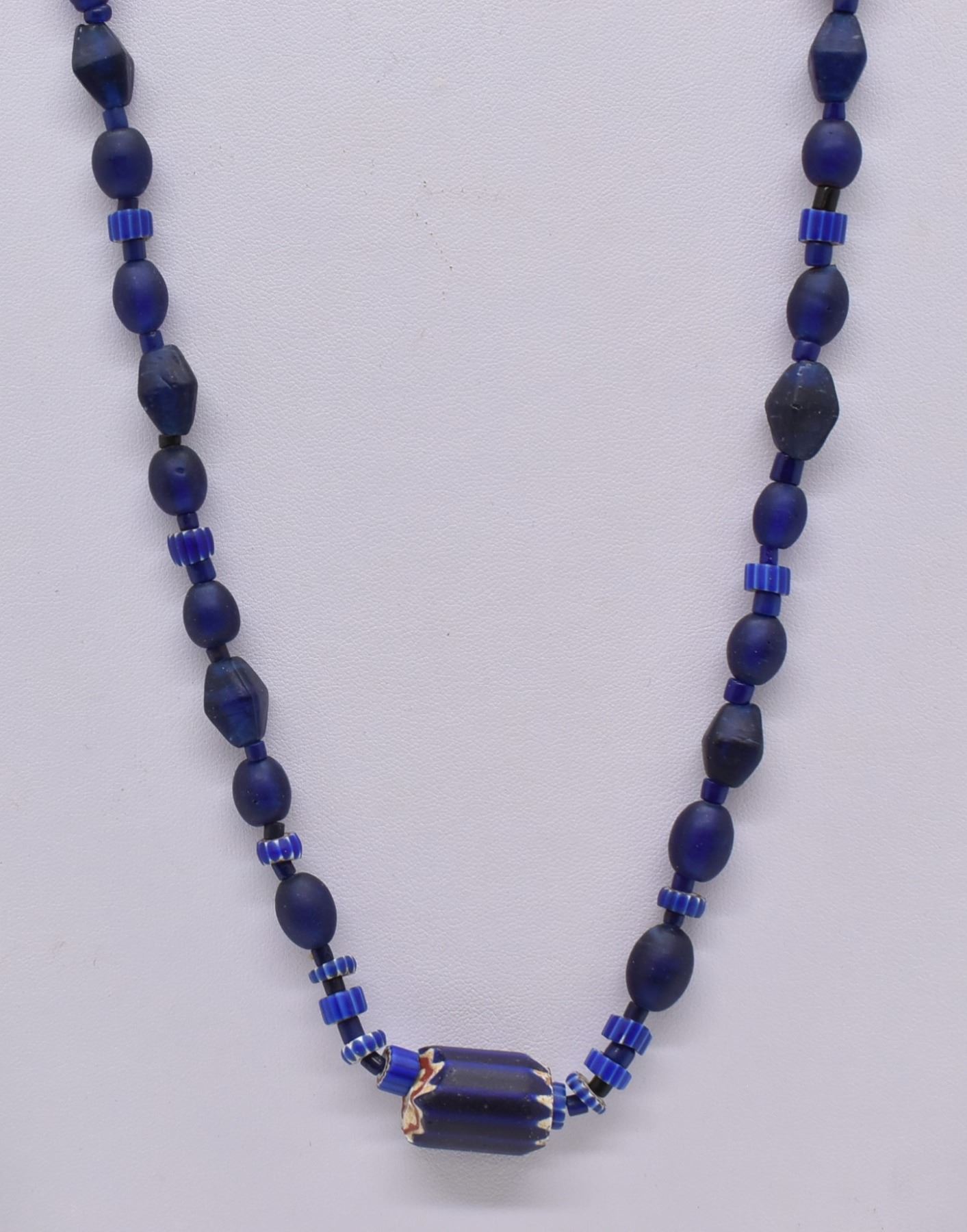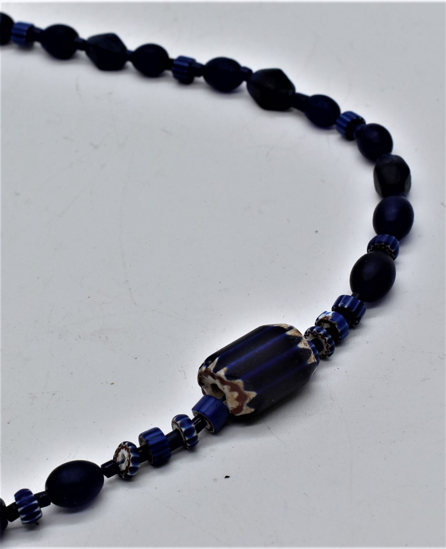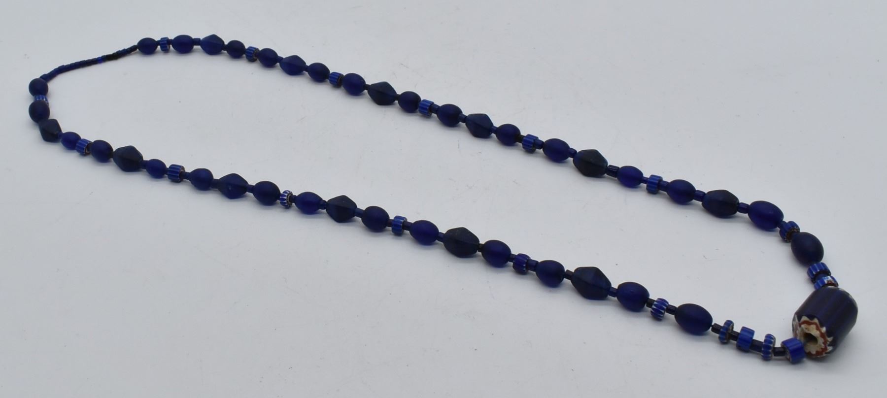 Vintage Venetian Cobalt Blue Chevron Bead Necklace, measures 30''L end to end