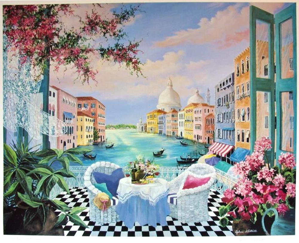 Venetian Garden Hand Signed Shari Hatchett | Unframed Size: 27X32 | Offered Unframed . Framing presentation if shown is for concept only. If you need assistance with custom framing, call the experts at ArtForSale