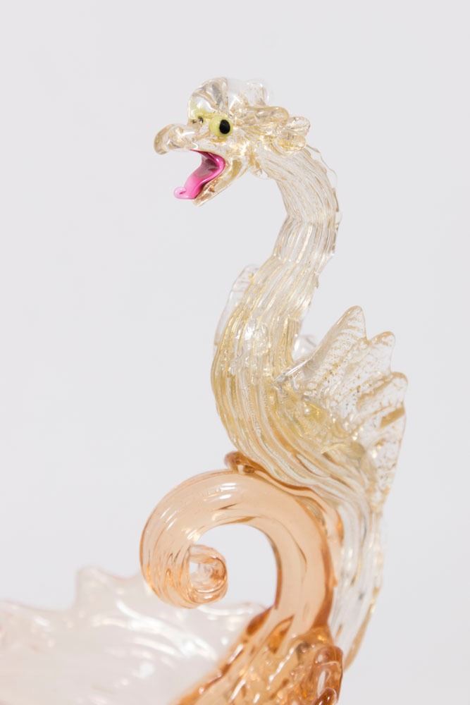 Phoenix and dolphin. Late 19th/early 20th century. Attributed to Salviati & C. Artisti Barovier or Fratelli Toso. Approx. 12 1/4" H. From a NY estate. (6092) Good condition.