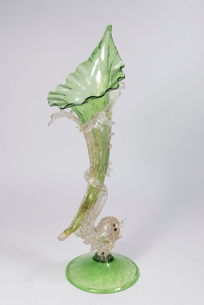 Dolphin. Late 19th/early 20th century. Attributed to Salviati & C. Artisti Barovier or Fratelli Toso. Approx. 17" H. From a NY estate. (6092) Good condition.