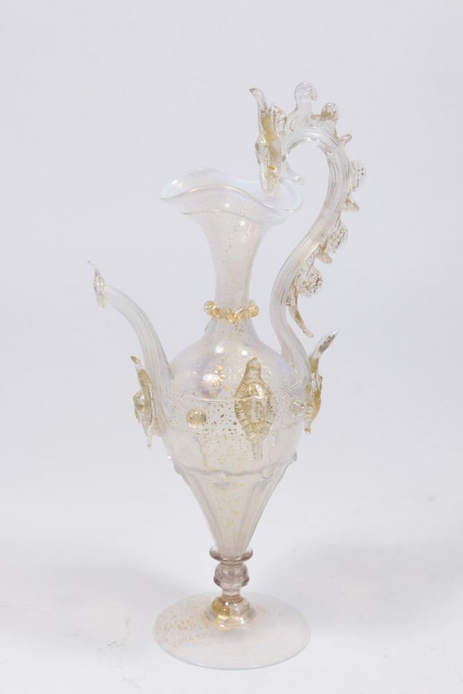 Late 19th/early 20th century. Attributed to Saviati Dott. Antonio/Artisti Barovier or Fratelli Toso. Approx. 13" H. From a NY estate. (6092) Chip on handle at upper scroll.