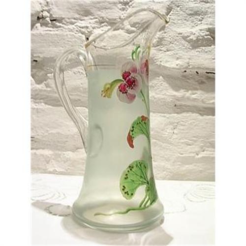 Venetian Jug decorated with enamel. In very good conditions, without any crack or chip. Made in glass, perfect for decoration or to use it. Probably with juices or cocktails. The decoration has a little relief.