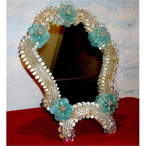<table width="100%" border="0" cellspacing="0" cellpadding="4"><tr><td><em> </em></td></tr><tr> <td width="100%"> A Venetian Mirror for wall, dressing or toilet. With decoration in glass representing flower. Is in excellent conditions, without anything broken. It?s from Italy, from the year 1890. The back side is wood.