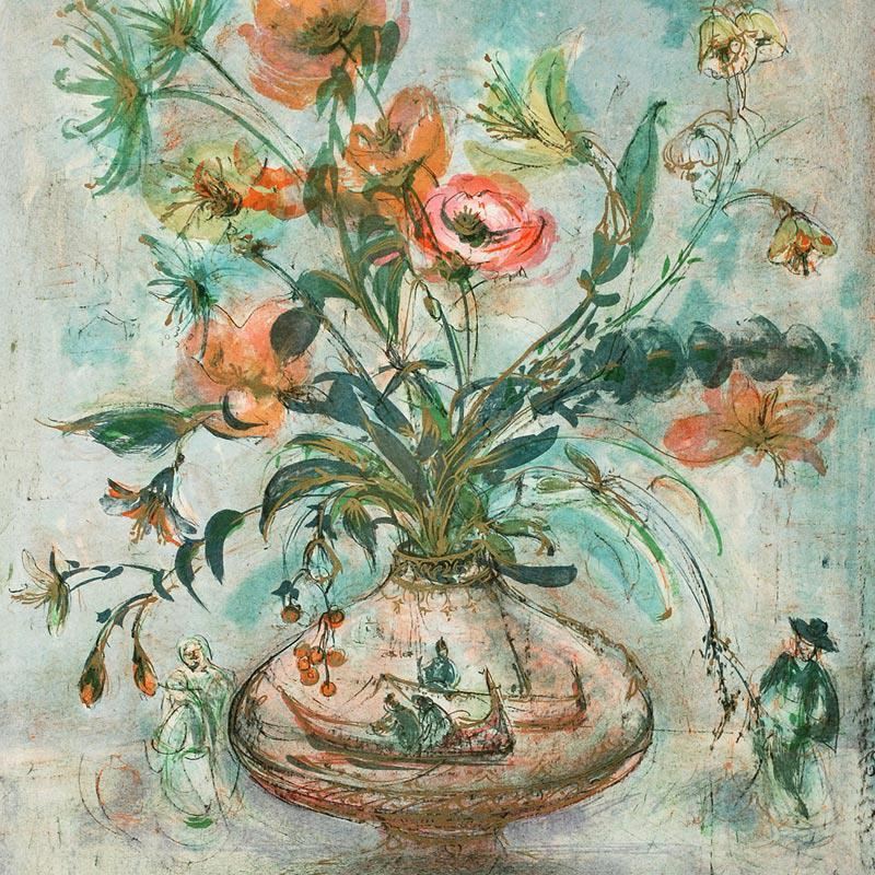 Wild lines and muted colors make Edna Hibel's art stand out in any room. "Venetian Still Life" is a limited edition lithograph on paper, numbered and hand signed by Hibel. Includes Certificate of Authenticity! Measures approx. 22.5" x 30" (border) 19.5" x 24.5" (image).