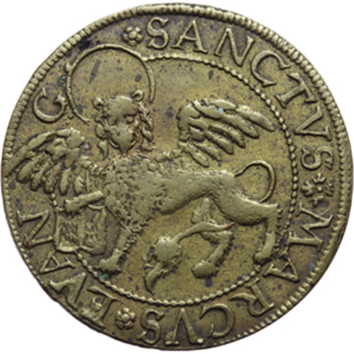 Monete e Medaglie di Zecche Italiane. Venezia. Tessera XVII sec. D/ Leone ad ali spiegate. R/ 4 gigli a croce. AE. g. 4.41 qSPL.