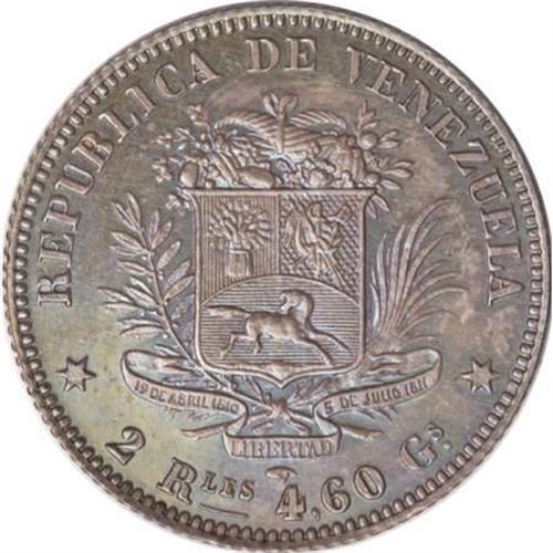 Venezuela Republic 2 Reales 1858A, KM-Y10,