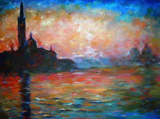 Venice at Dusk by Monet Numbered Giclee 17x22 1/2Hand Embellished on Canvas