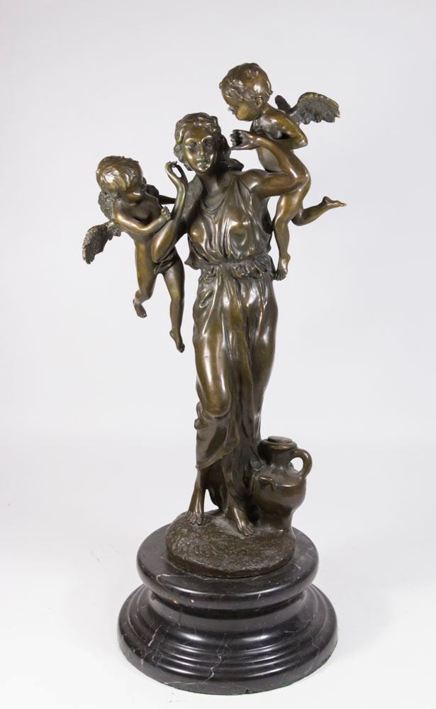 Contemporary. Bronze grouping. On black marble pedestal base. Unsigned. Approx. 21 1/4" H without base, 25 3/4" H with base. Property from the collection of Hank Willoughby, Allenwood, NJ.