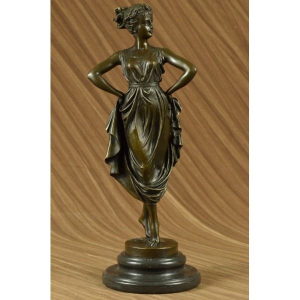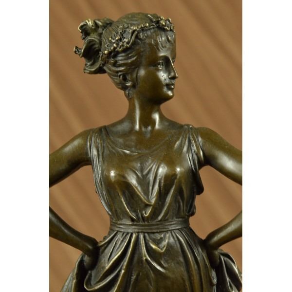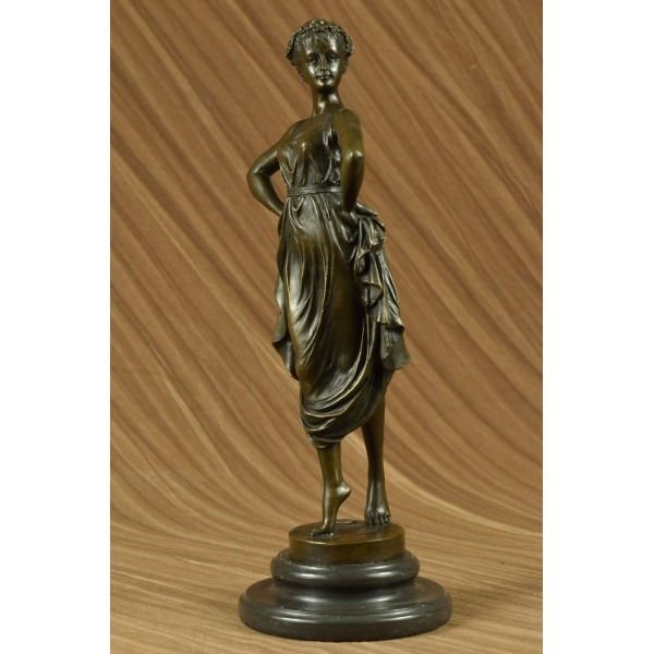 In Roman Mythology, Venus Is Regarded Not Only As The Goddess Of Love And Desire, But Also As Something Of A Maternal Figure, A Mother Of Their People. In The Bronze Venus Statue, We See A Modest Yet Beautiful Side Of The Goddess Of Desire. This Statue Depicts Venus Standing On A Circular Platform, Covering Herself With A Flowing, Elegant Robe. Her Head Is Turned To The Side, As Though Thoughtfully Watching A Distant Act, While Her Hair Is Pulled Back Into A Simple Pony Tail. This Modest Yet Beautiful Statue It Has Been Tastefully Hand Painted To Make It Look Like Cast Bronze Metal, Which Adds A Metallic Luster To The Already Stunning Statue. The Statue Stands 15Inches Tall. The Bronze Venus Canova Statue Is A Tasteful And Elegant Representation Of The Roman Goddess Of Love, One That Any Mythological Or Artistic Collector Would Certainly Want To Add To Their Collection. Bronze dimensions with marble base: Height 15 X Width 6 inches. Weight: 8 lbs.Please Note: This is a reproduction bronze sculpture from the original molded and signed. This featured bronze sculpture is a recast after the original, and has been done recently. This 100% bronze sculpture is an abstract piece certain to be a conversation piece.Please Note: This is a reproduction bronze sculpture from the original molded and signed. This featured bronze sculpture is a recast after the original, and has been done recently. This 100% bronze sculpture is an abstract piece certain to be a conversation piece.