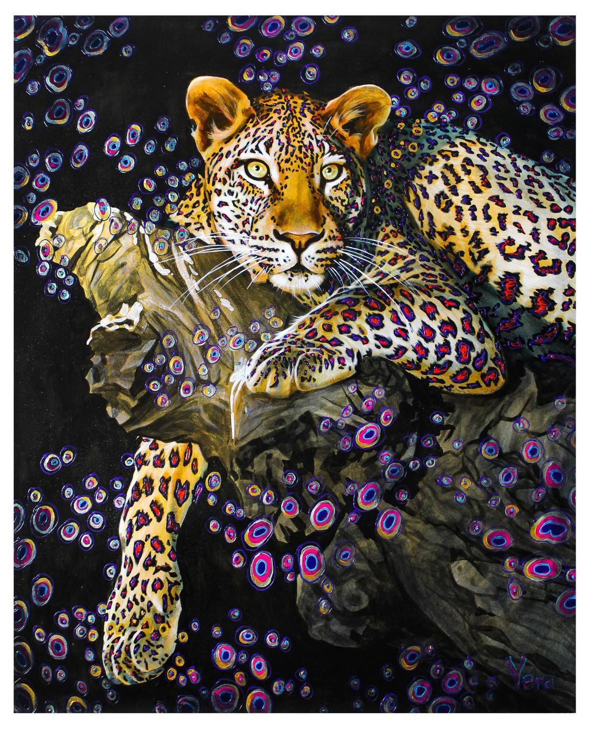 Artist: Vera V. Goncharenko. Medium: Original Oil on Canvas. Title: Hiding on a Tree Trunk. Size (Unframed): 30" x 24". Certificate of Authenticity: From the publisher. Reference# 14207.