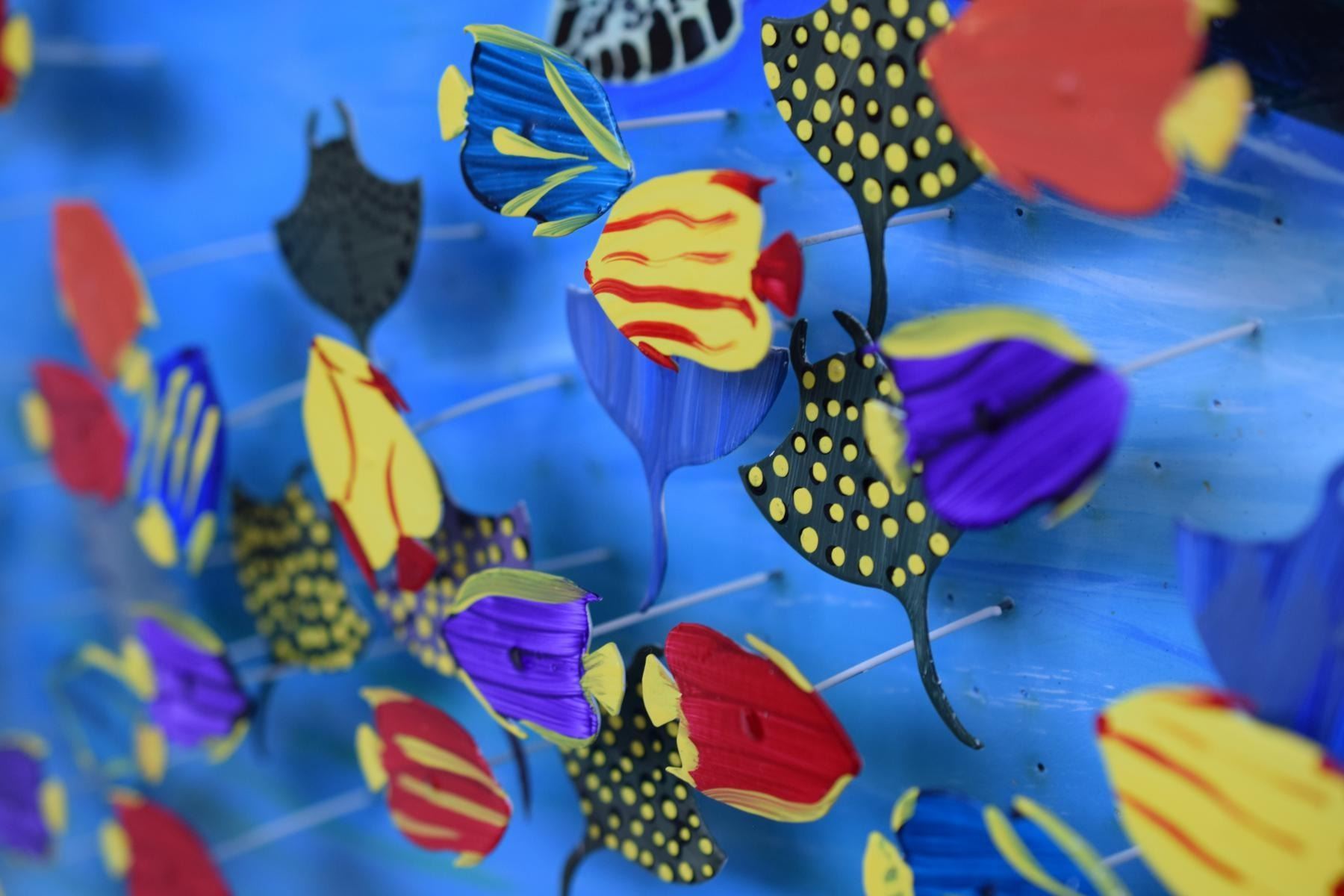 Artist: Vera V. Goncharenko. Medium: Original Painting on Cutout Steel and Board. Title: Deep Sea Adventure. Size (Unframed): 31.5" x 31.5". Certificate of Authenticity: From the publisher. Additional: 3D work of original one of a kind painting on wood board and laser cut steels. . Reference# 11367.