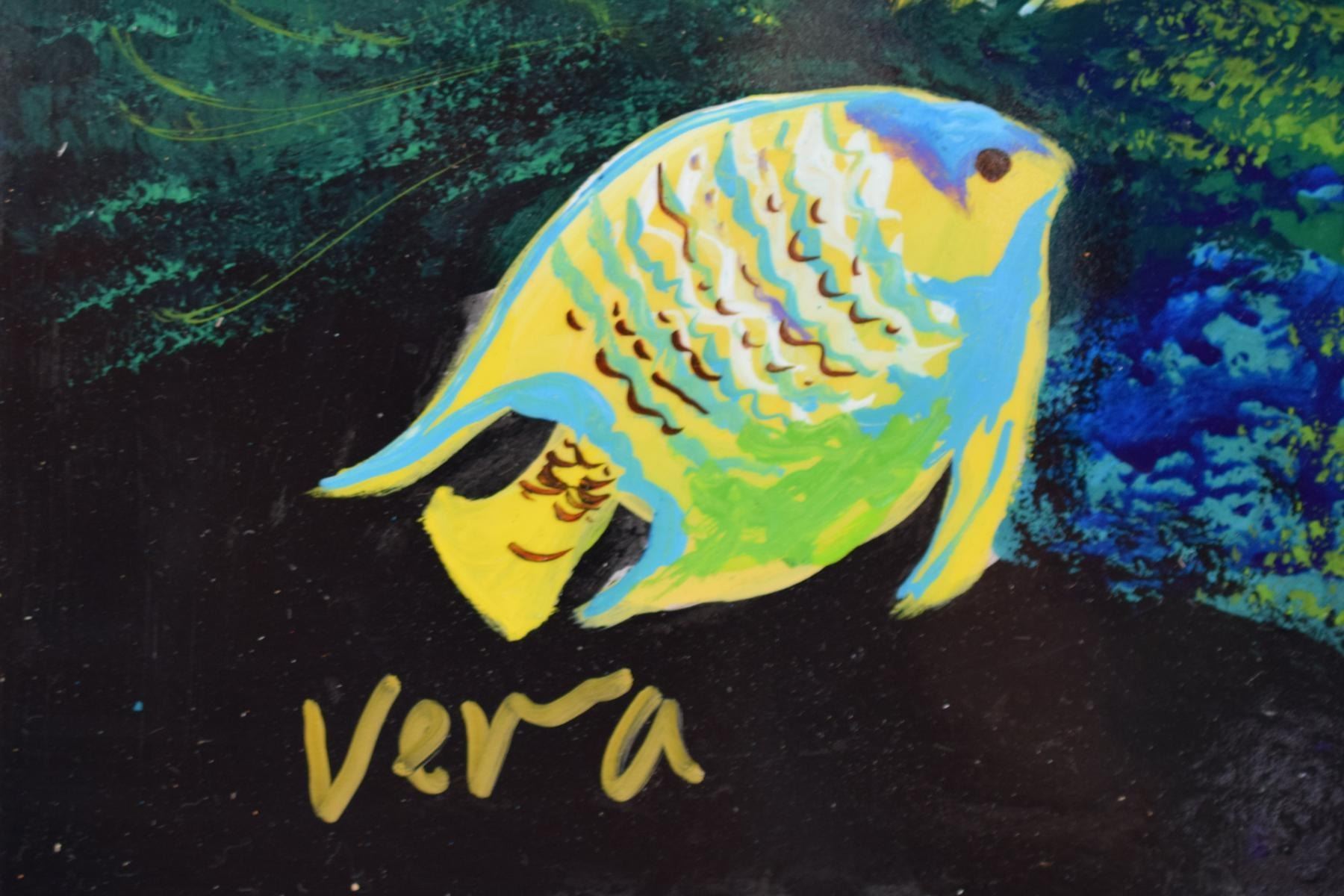 Artist: Vera V. Goncharenko. Medium: Original Painting on Cutout Steel and Board. Title: Deep Sea Adventure. Size (Unframed): 31.5" x 31.5". Certificate of Authenticity: From the publisher. Additional: 3D work of original one of a kind painting on wood board and laser cut steels. . Reference# 11367.