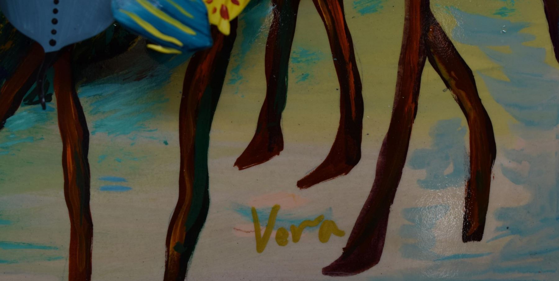 Artist: Vera V. Goncharenko. Medium: Original Painting on Cutout Steel and Board. Title: Ocean Life. Size (Unframed): 24" x 47". Certificate of Authenticity: From the publisher. Additional: 3D work of original one of a kind painting on wood board and laser cut steels. . Reference# 11366.
