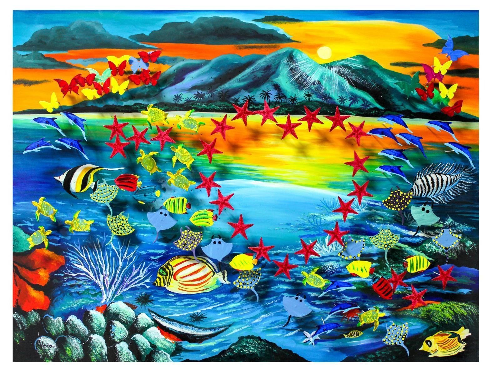 Artist: Vera V. Goncharenko. Medium: Original Painting on Cutout Steel and Board. Title: Sunset. Size (Unframed): 24" x 31.5". Certificate of Authenticity: From the publisher. Reference# 11741.