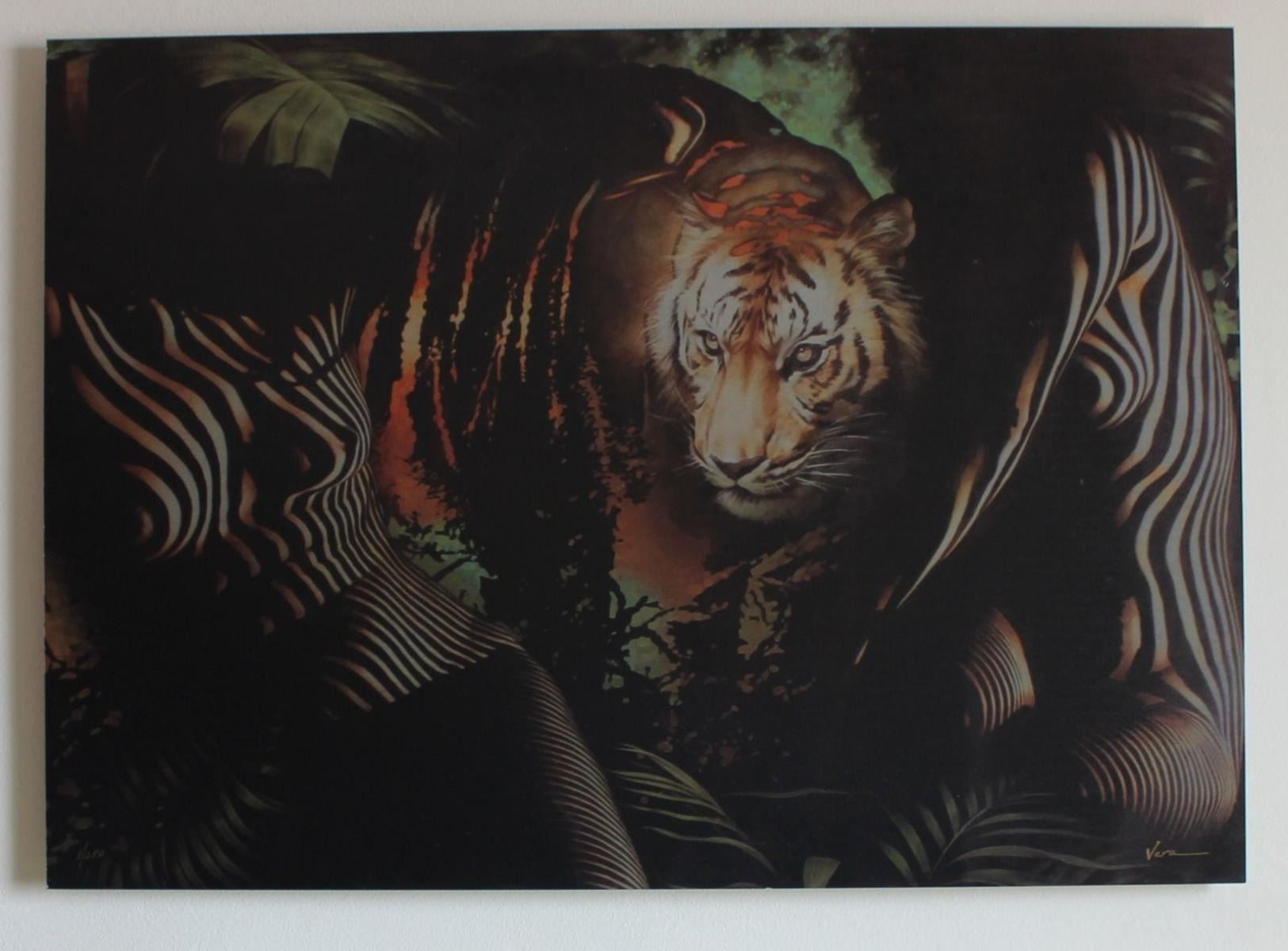 Artist: Vera V. Goncharenko. Medium: Print on Aluminum. Title: The Ladies with the Tiger. Size (Unframed): 19" x 27". Certificate of Authenticity: From the publisher. Reference# 10588.