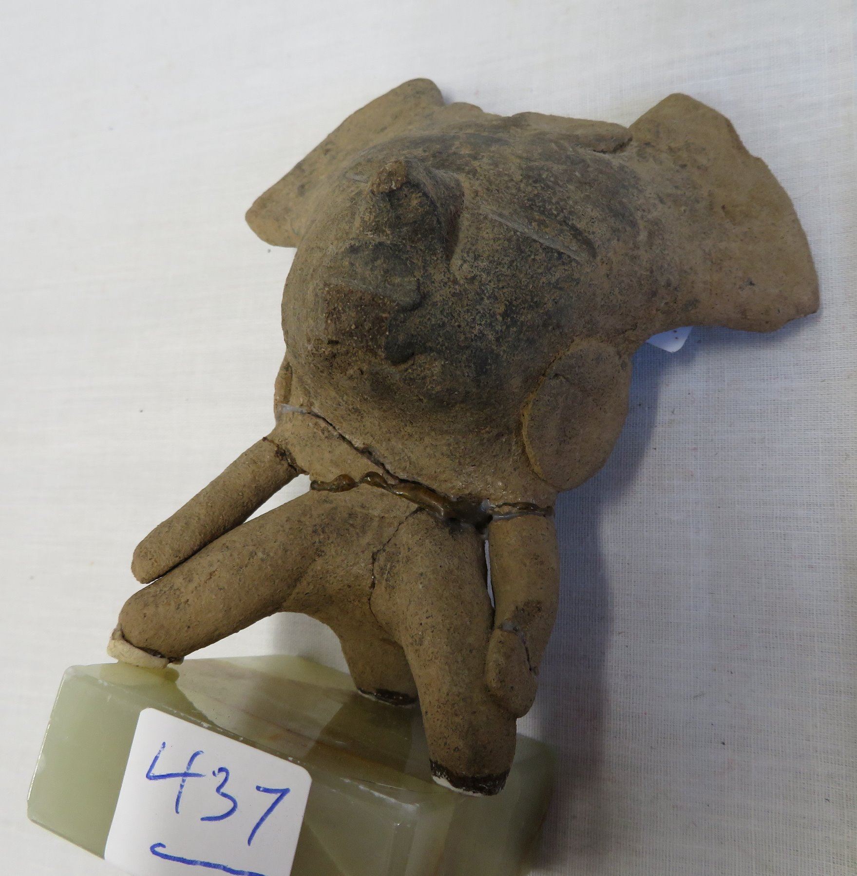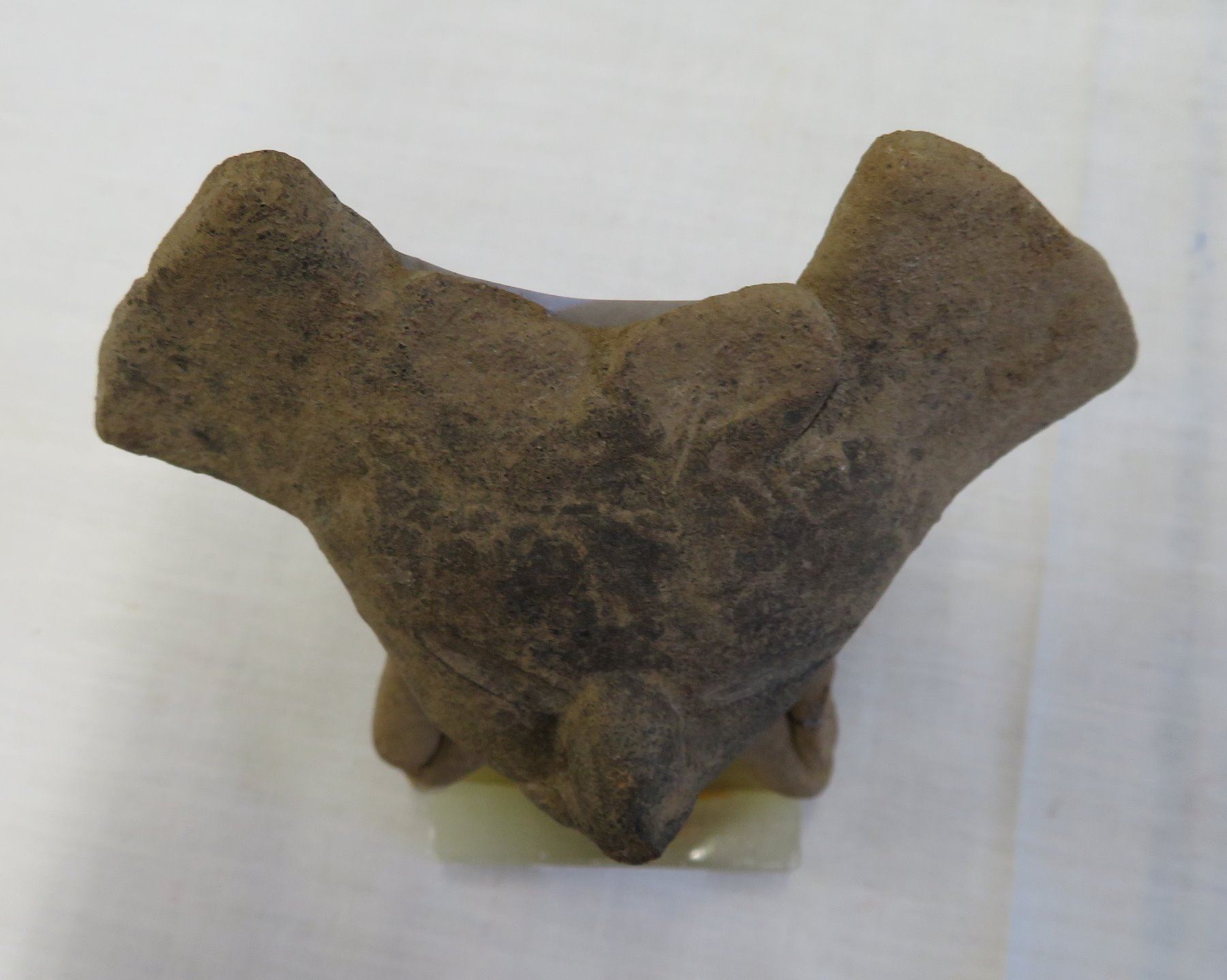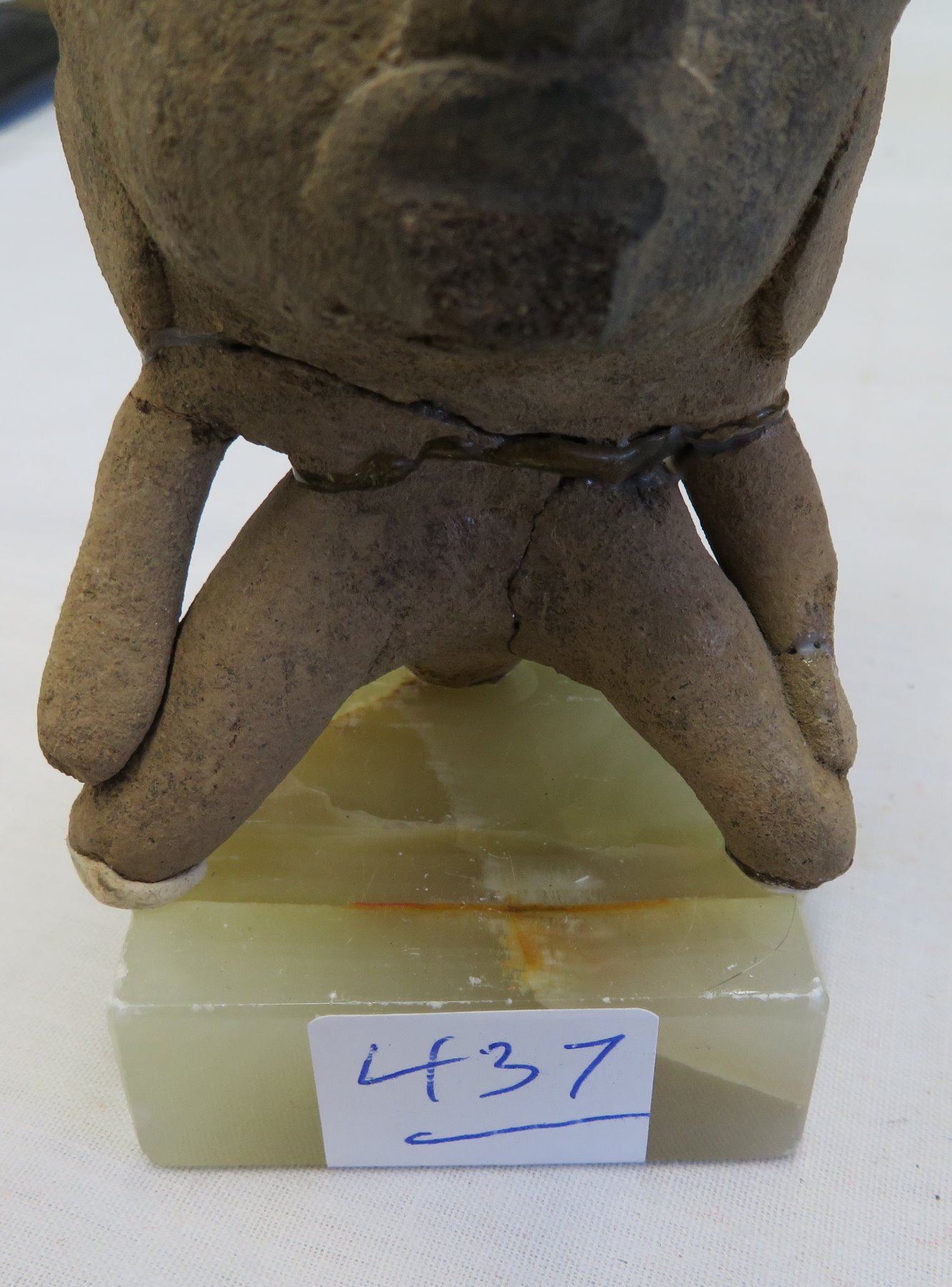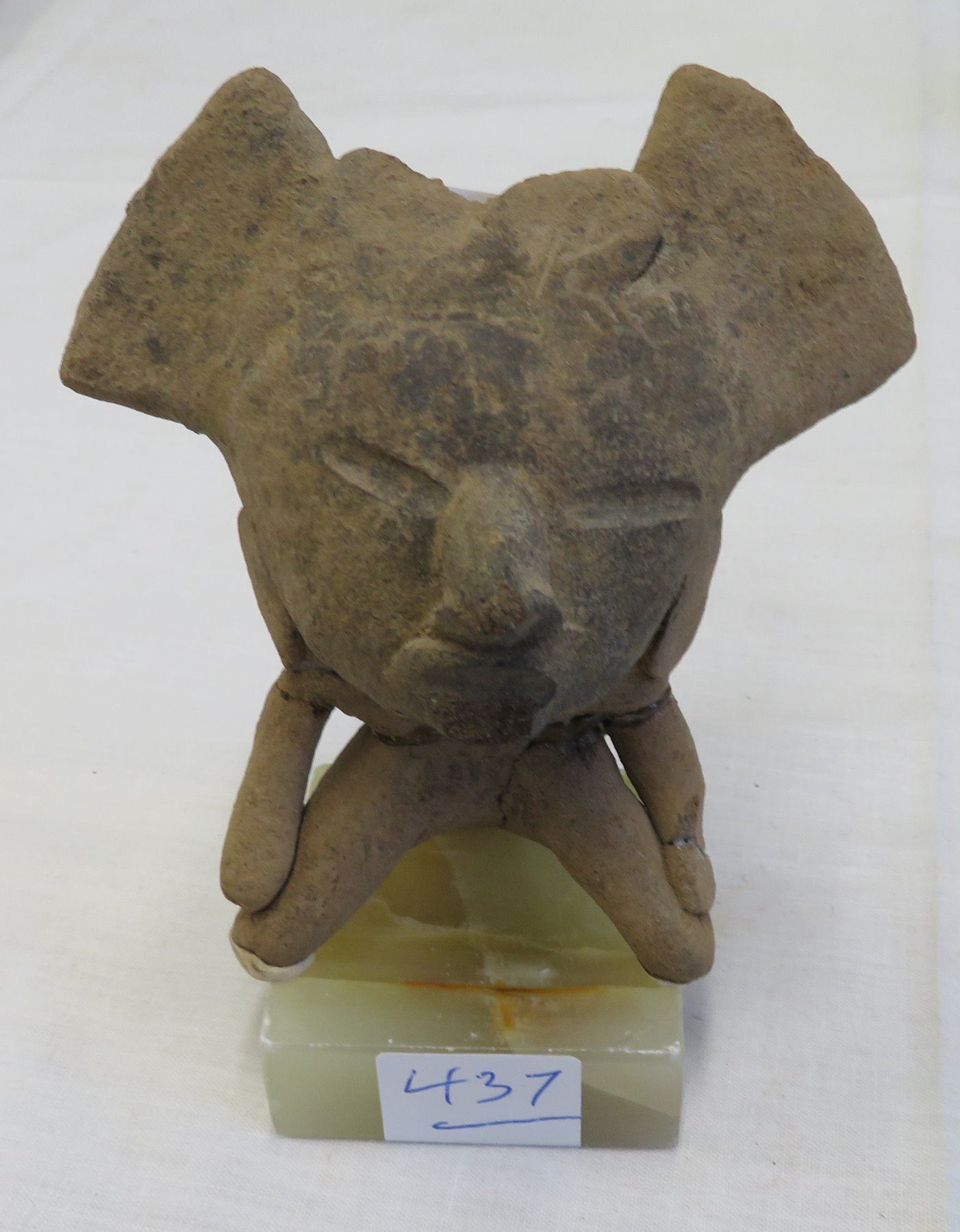 Veracruz Figure, pre-Columbian item. Made of clay, the item measures 4 1/2" x 3" x 2". Veracruz, Mexico. Condition: As found, see images. Shipping: $20.00 w/insurance and signature.