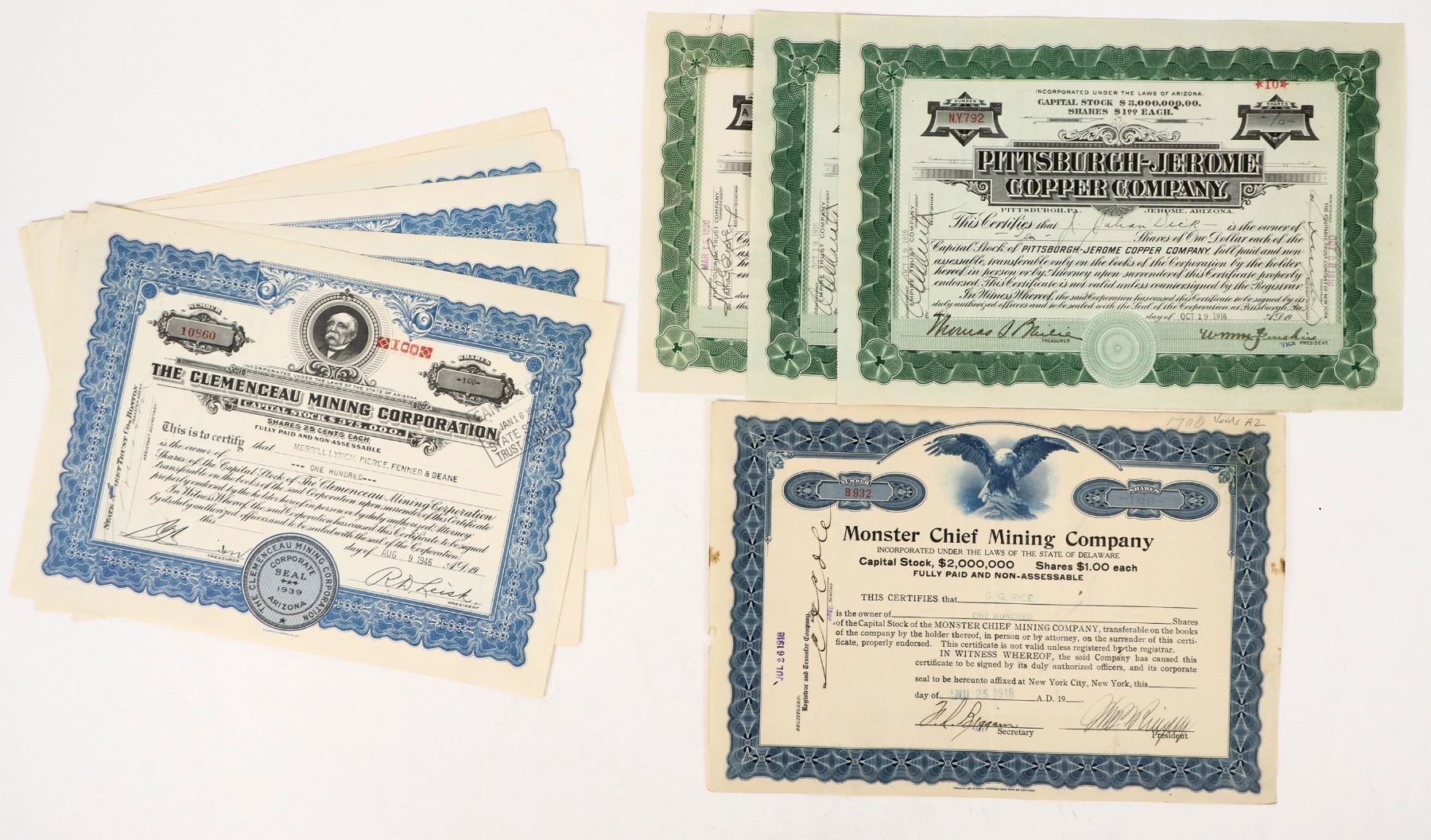 Verde, Yavapai Stocks including Pittsburg-Jerome Copper Company (3) Monster Chief Mining Company (1) Clemenceau Mining Corporation (6)