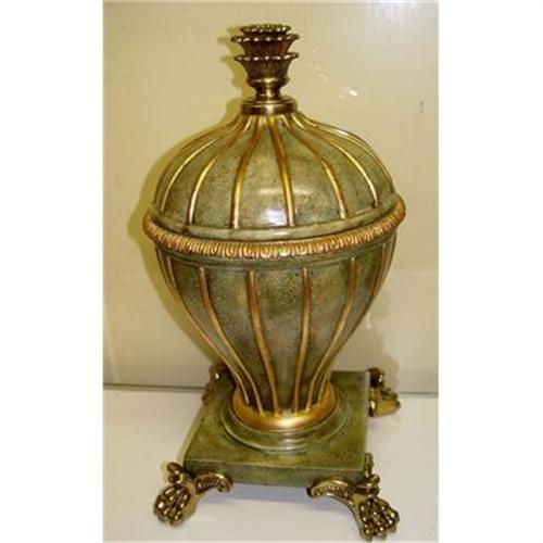 <tr><td>Title:Verdigris Gilt Bronze Dragon Paw Lidded Urn</td></tr>